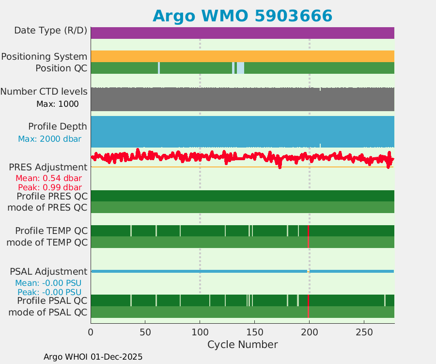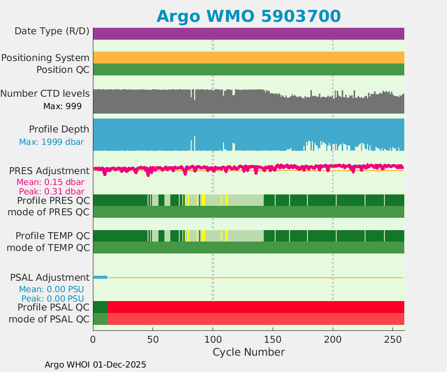 | WMO: #5903698 DAC: csiro PI: Susan Wijffels APEX: #5751 SBE41CP_V2: #3272 DRUCK: #3167402 Altimeter Comparison (IFREMER) EuroArgo Link | ![]() |