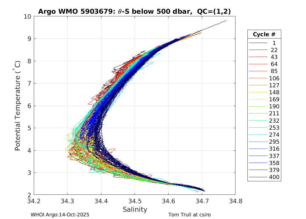 | WMO: #5903649 DAC: csiro PI: Tom Trull APEX: #5117 SBE41CP_IDO_V2.0b: #3025 DRUCK: #3058466 SBE43F_IDO: #565 ECO_FLBB_AP2: #1694 Altimeter Comparison (IFREMER) EuroArgo Link | ![]() |