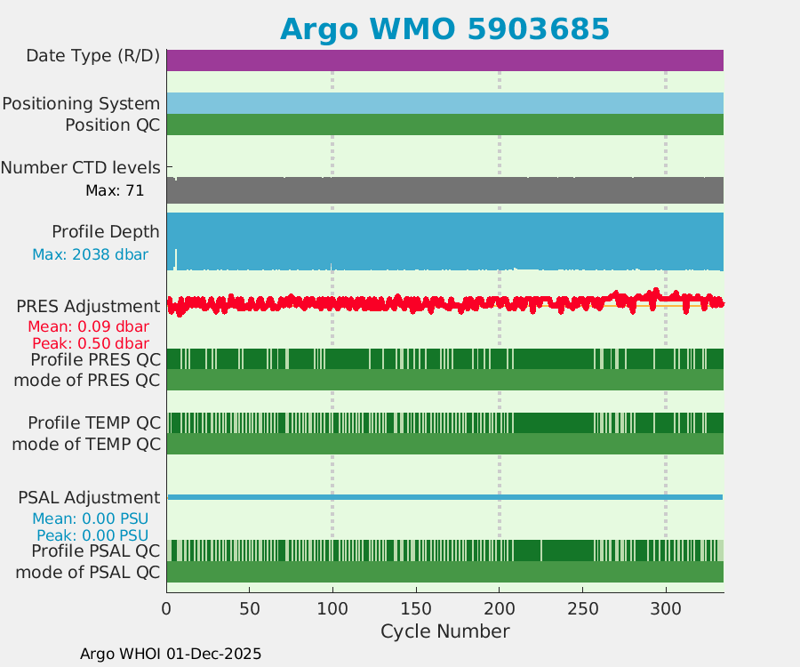 | WMO: #5903699 DAC: csiro PI: Susan Wijffels APEX: #5758 SBE41_V3: #5580 DRUCK: #3155246 Altimeter Comparison (IFREMER) EuroArgo Link | ![]() |
