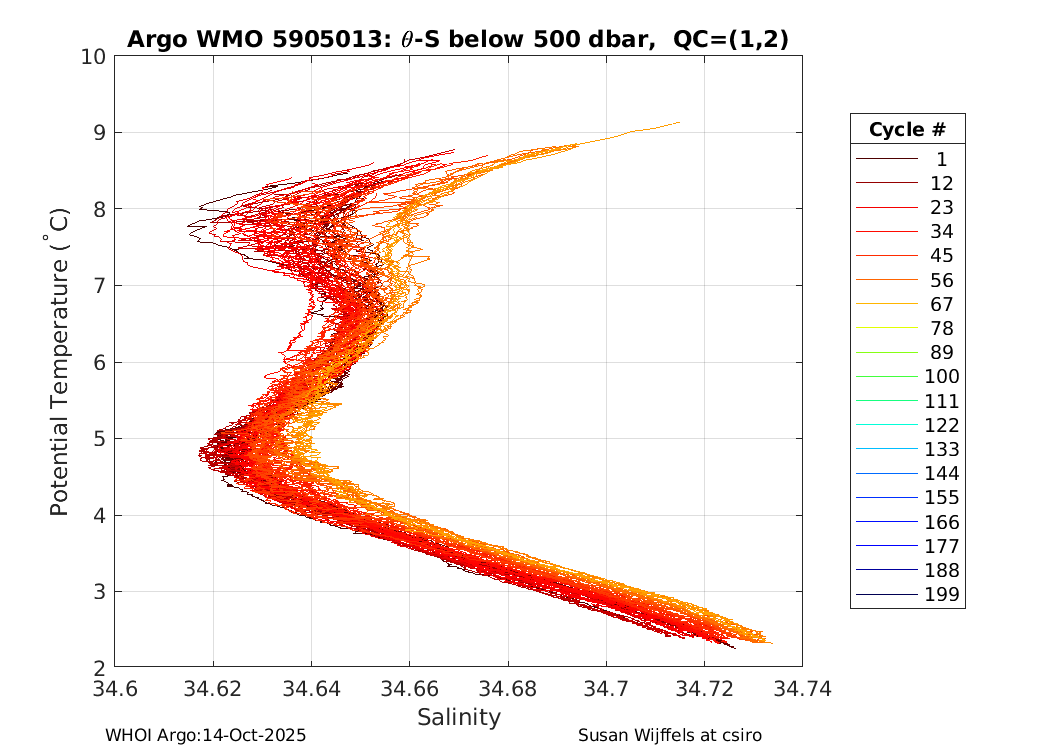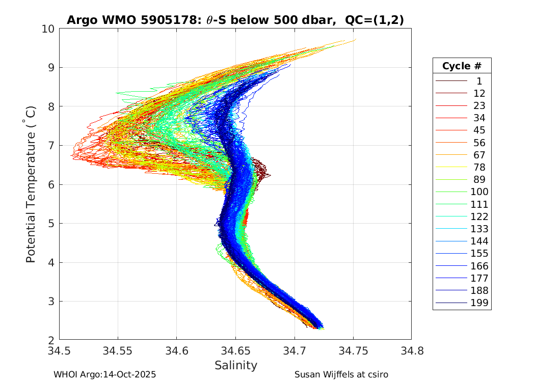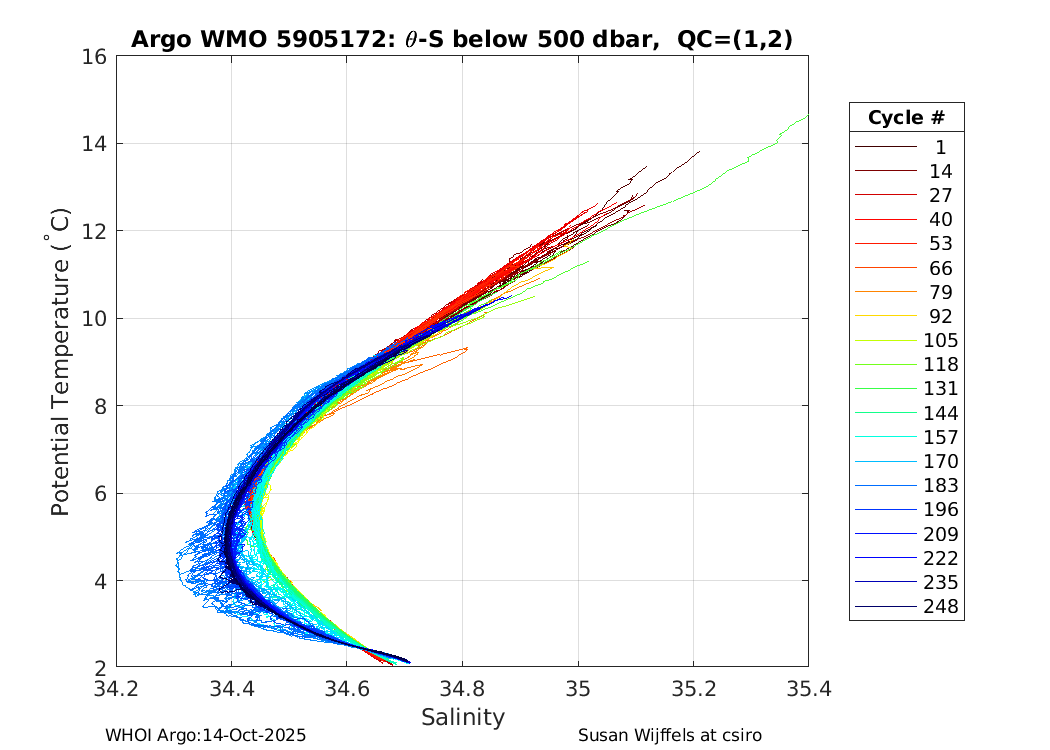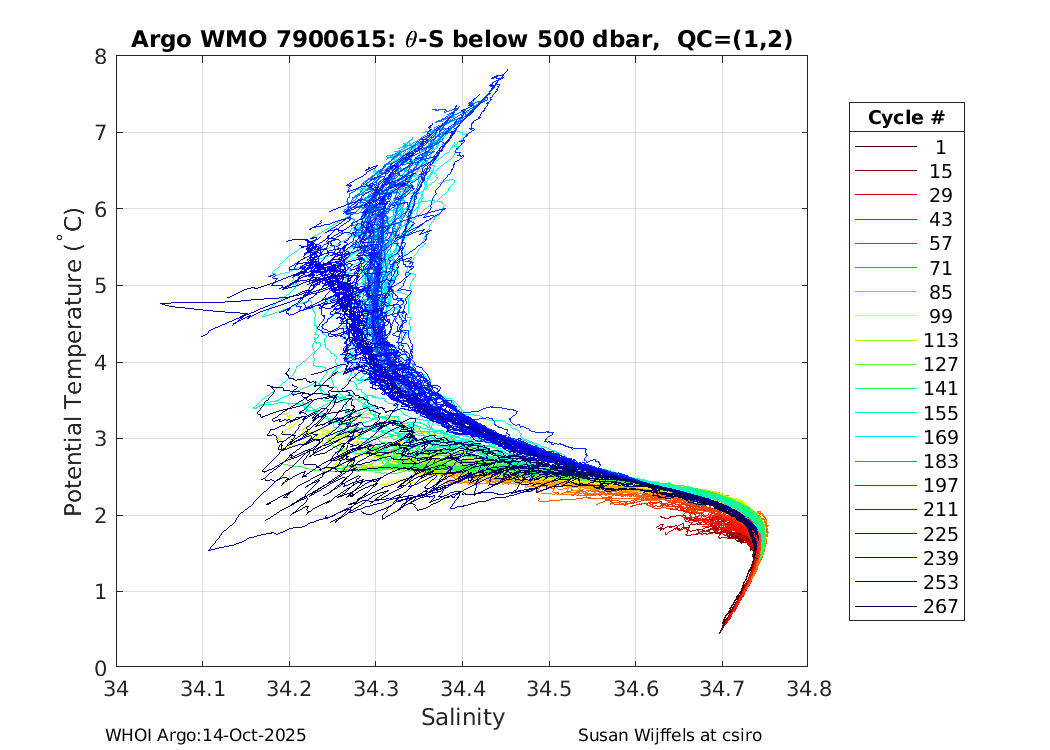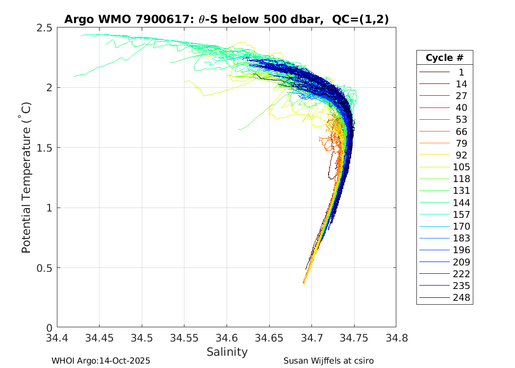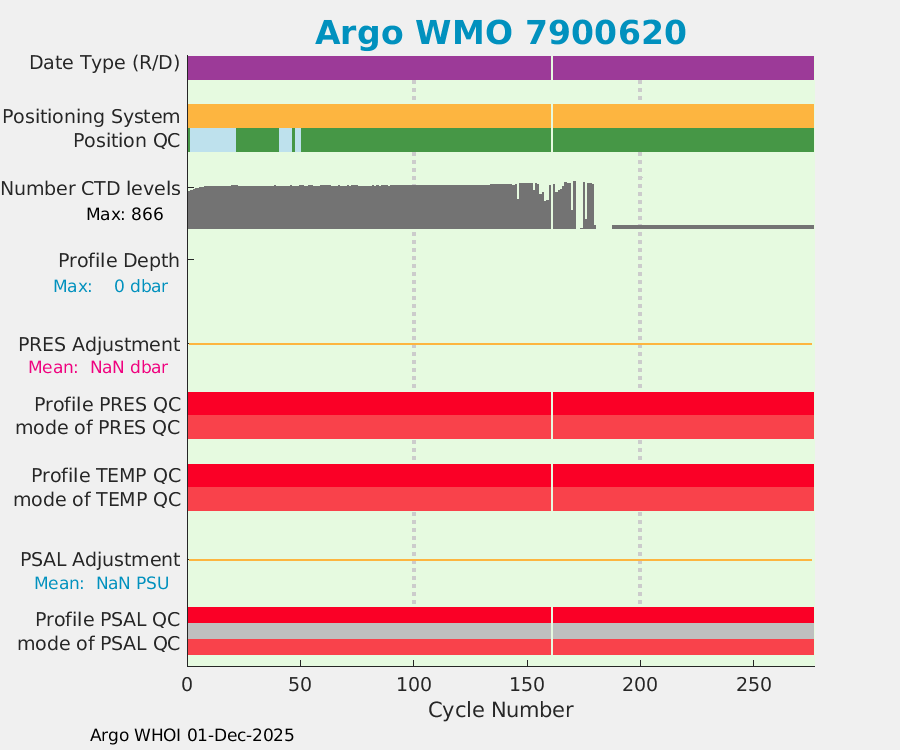 | WMO: #5905191 DAC: csiro PI: Susan Wijffels NAVIS_EBR: #763 SBE41CP_V7.2.5: #8633 DRUCK: #10300736 Altimeter Comparison (IFREMER) EuroArgo Link | ![]() |