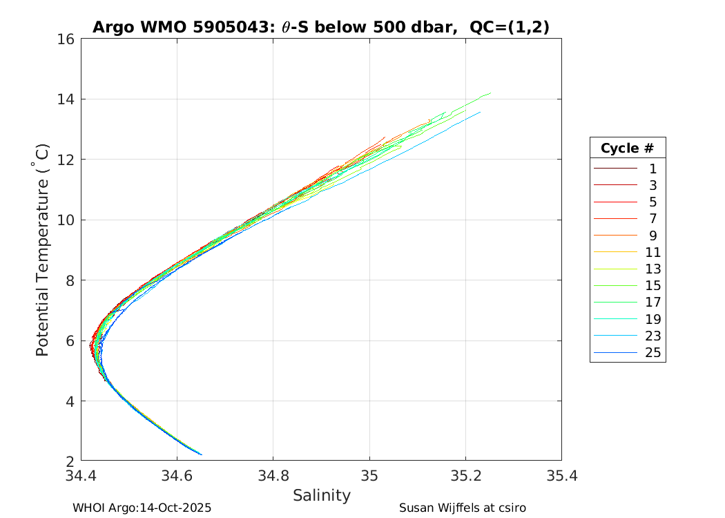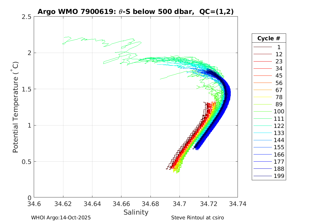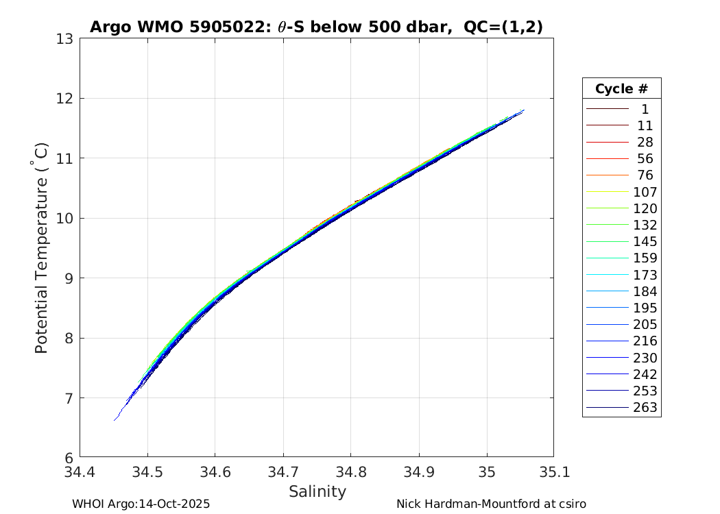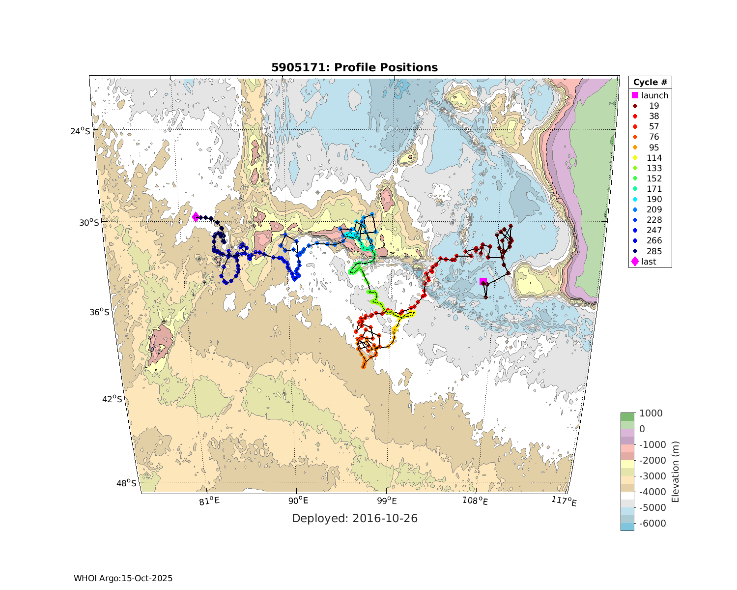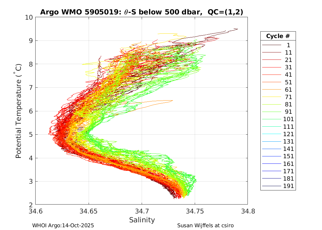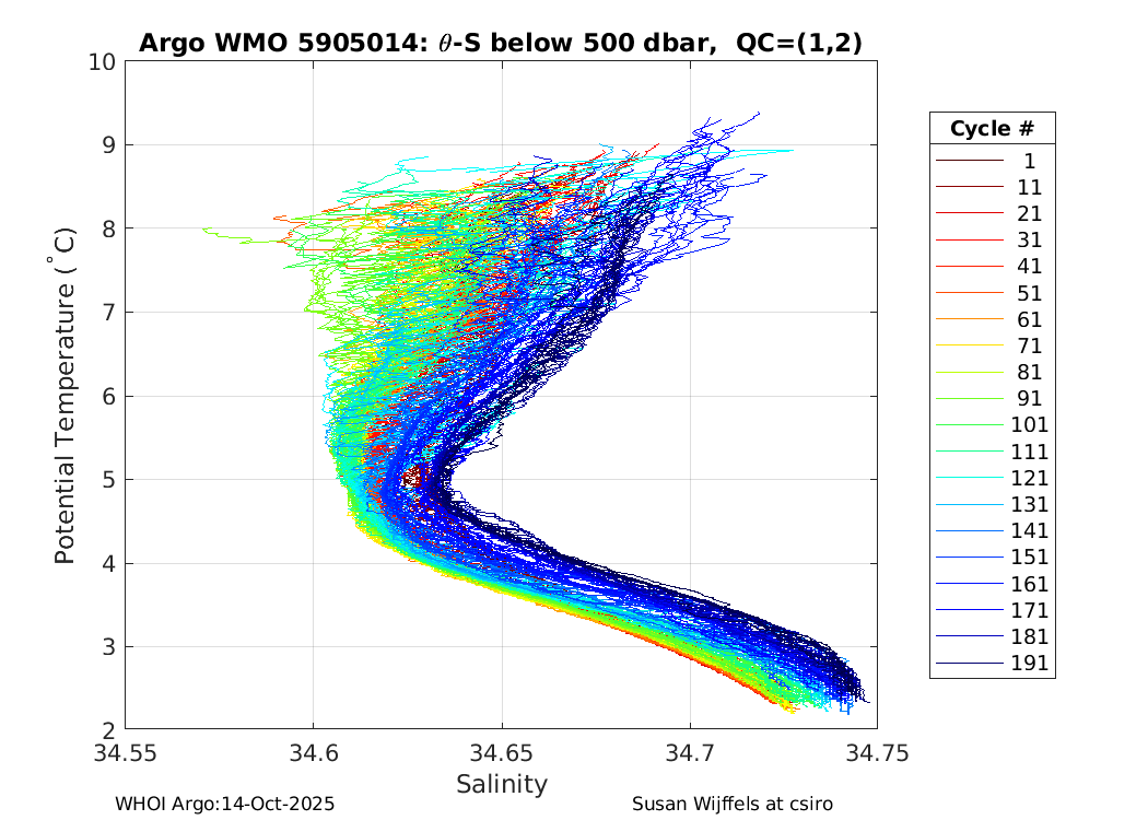 | WMO: #5905191 DAC: csiro PI: Susan Wijffels NAVIS_EBR: #763 SBE41CP_V7.2.5: #8633 DRUCK: #10300736 Altimeter Comparison (IFREMER) EuroArgo Link | ![]() |