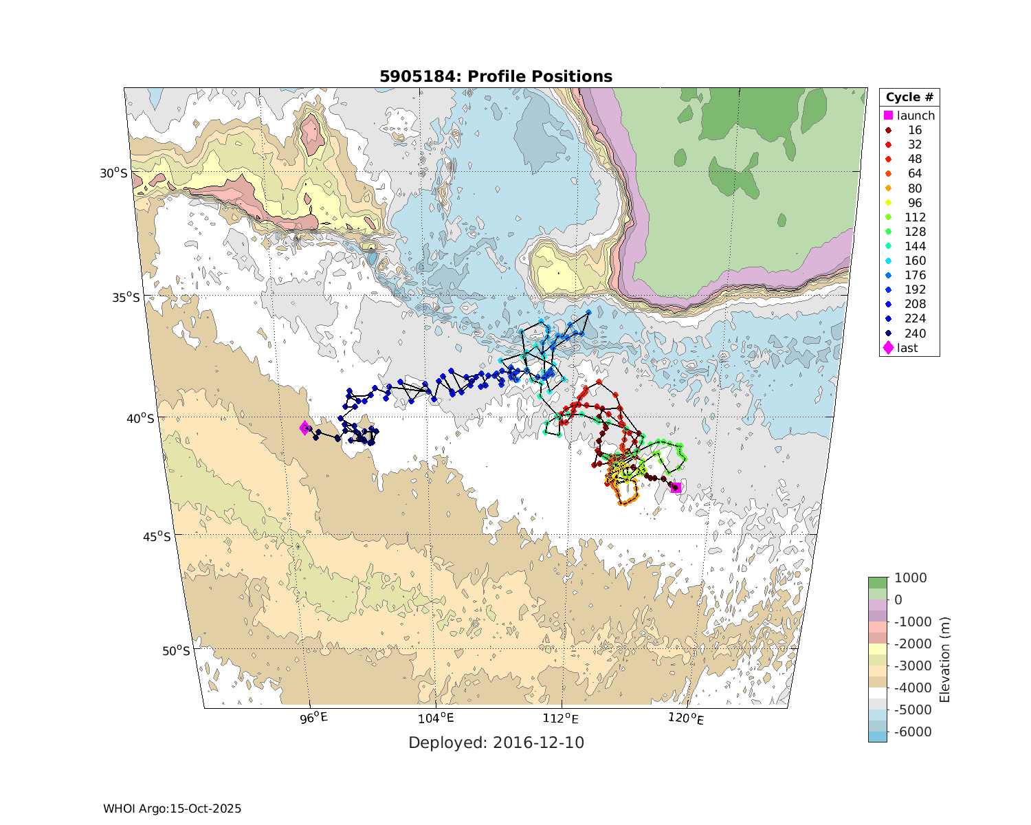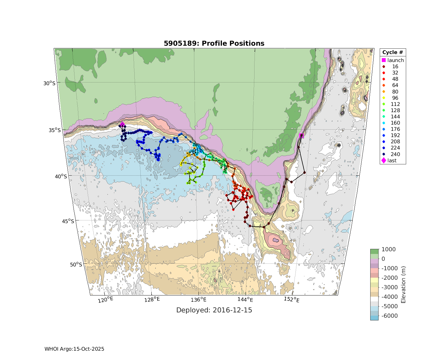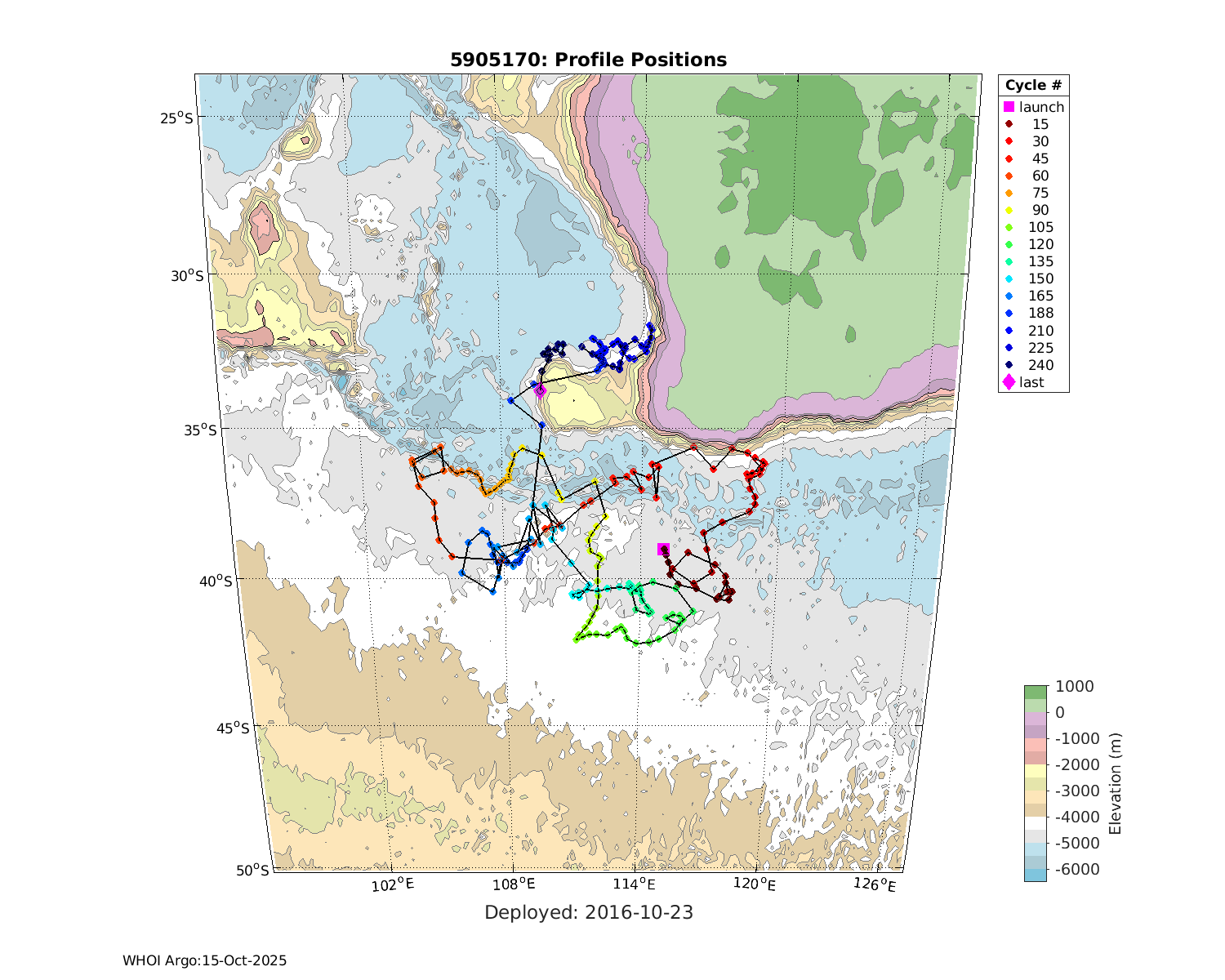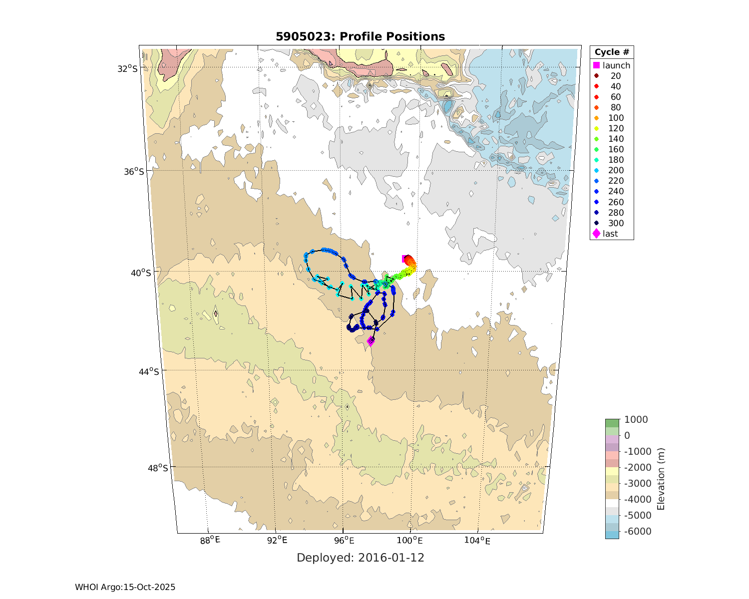 | WMO: #5905185 DAC: csiro PI: Susan Wijffels APEX: #7798 SBE41CP_V7.2.5: #8225 KISTLER: #4780000 Altimeter Comparison (IFREMER) EuroArgo Link | ![]() |