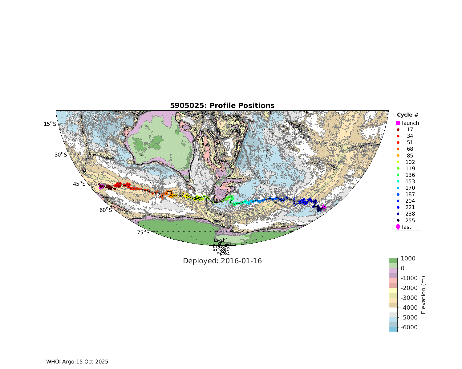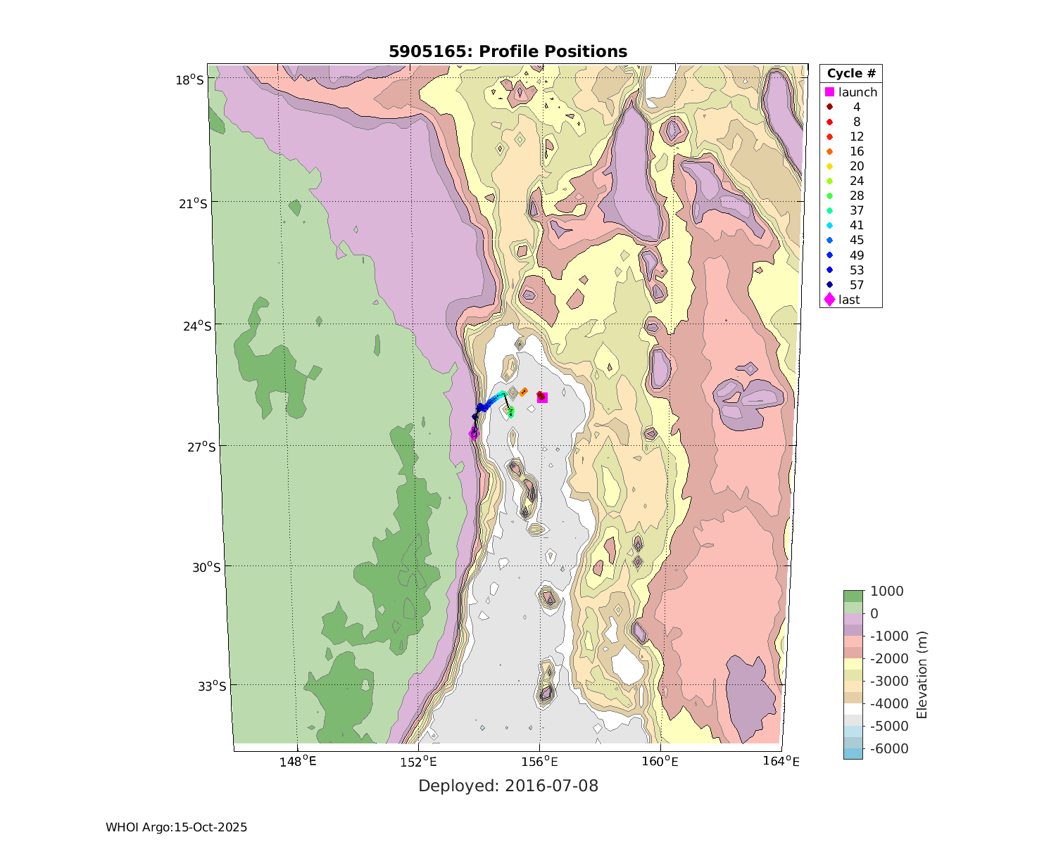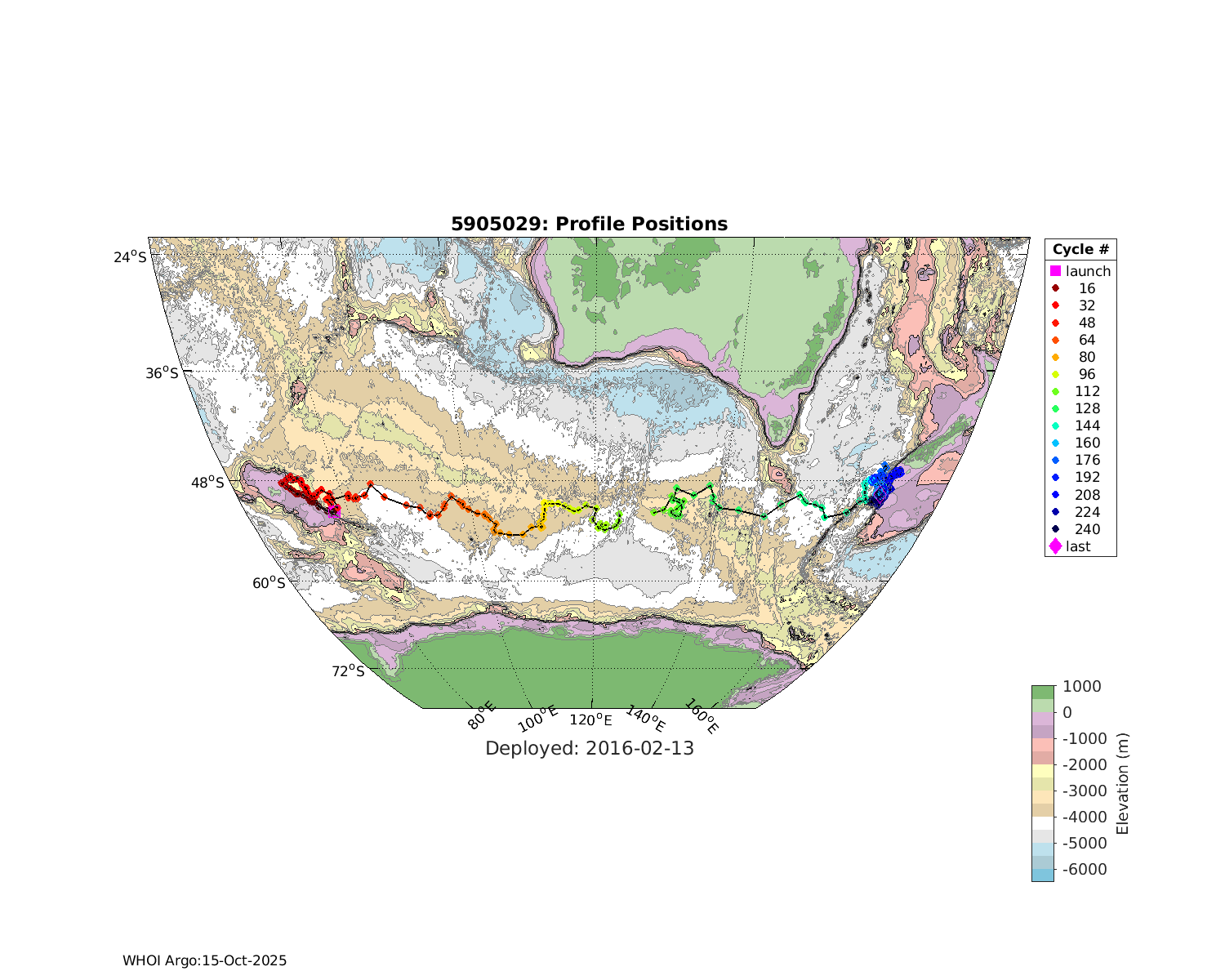 | WMO: #5905185 DAC: csiro PI: Susan Wijffels APEX: #7798 SBE41CP_V7.2.5: #8225 KISTLER: #4780000 Altimeter Comparison (IFREMER) EuroArgo Link | ![]() |