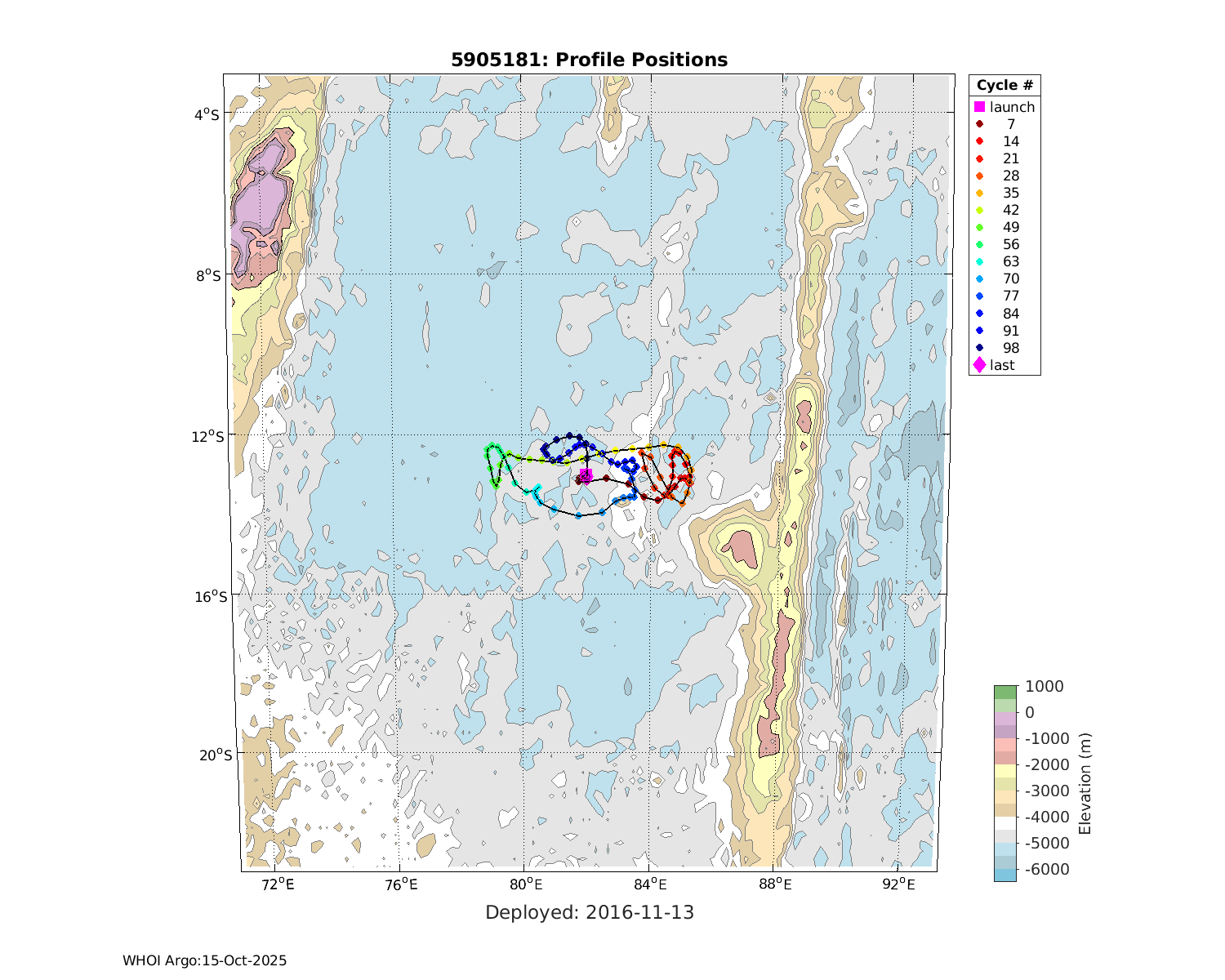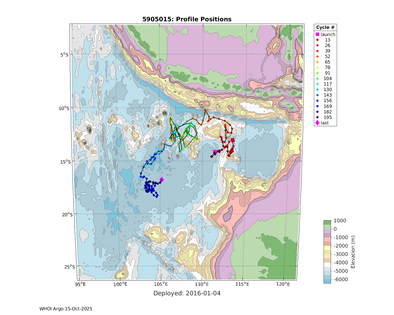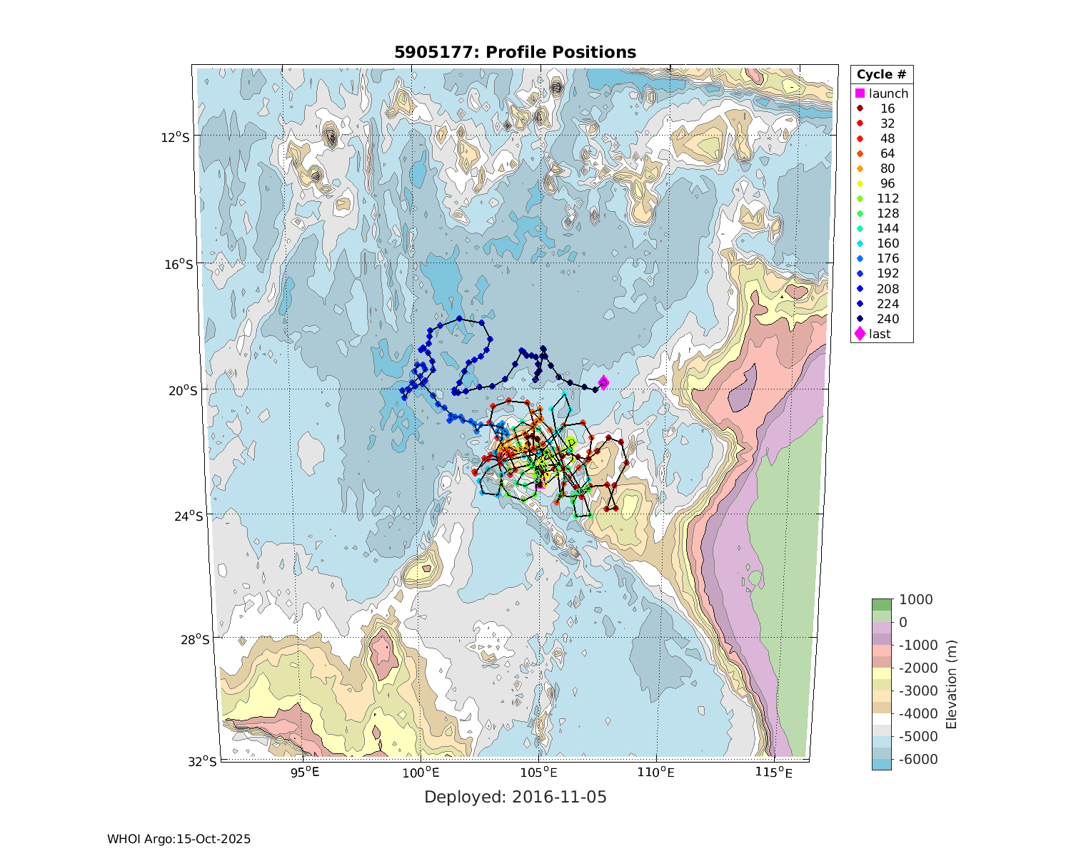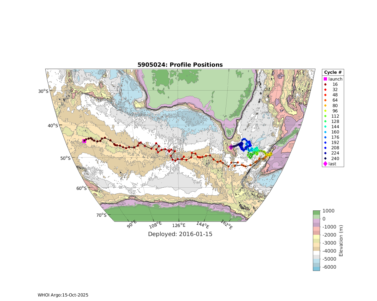 | WMO: #5905185 DAC: csiro PI: Susan Wijffels APEX: #7798 SBE41CP_V7.2.5: #8225 KISTLER: #4780000 Altimeter Comparison (IFREMER) EuroArgo Link | ![]() |