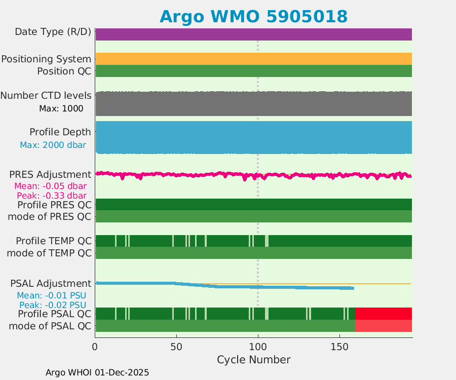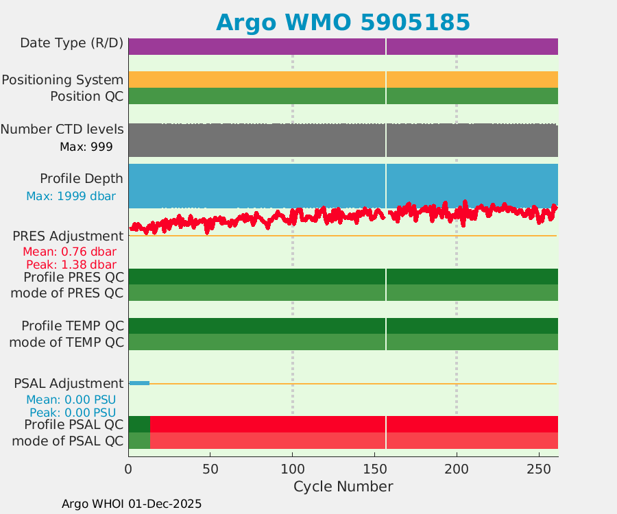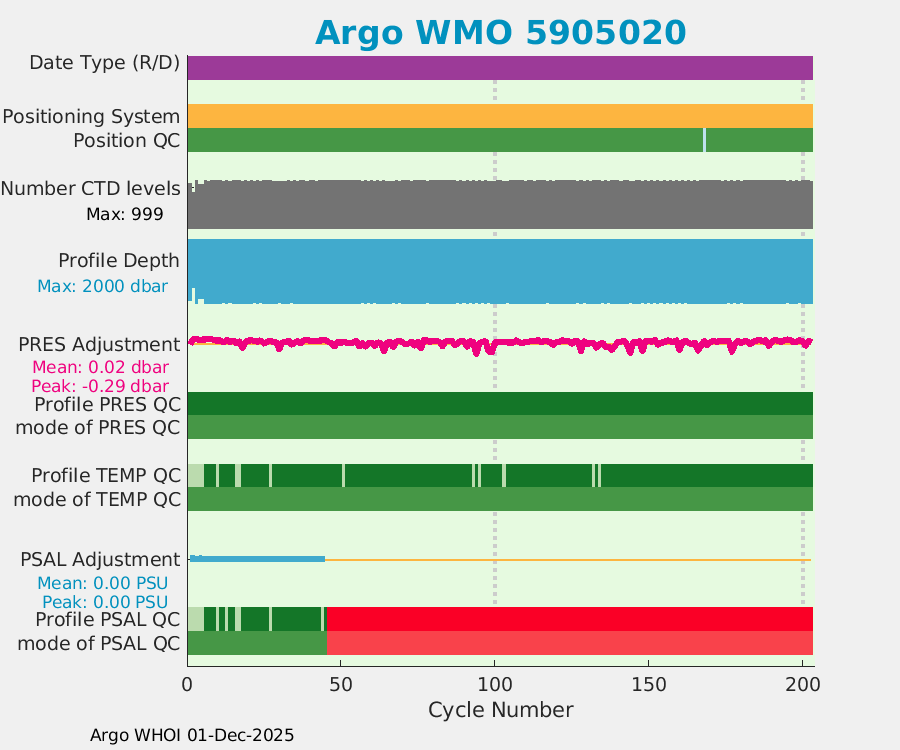 | WMO: #5905018 DAC: csiro PI: Susan Wijffels APEX: #7427 SBE41CP_V2: #7053 DRUCK: #4224991 Altimeter Comparison (IFREMER) EuroArgo Link | ![]() |