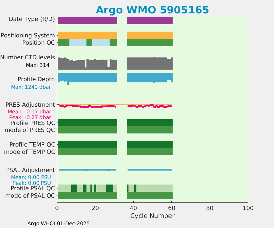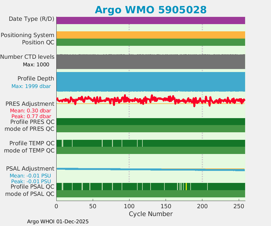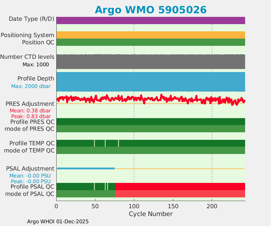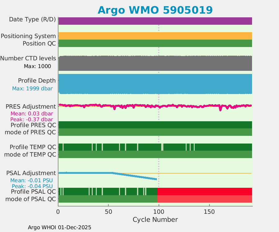 | WMO: #5905039 DAC: csiro PI: Susan Wijffels APEX: #7375 SBE41CP_V2: #6857 DRUCK: #4196081 Altimeter Comparison (IFREMER) EuroArgo Link | ![]() |