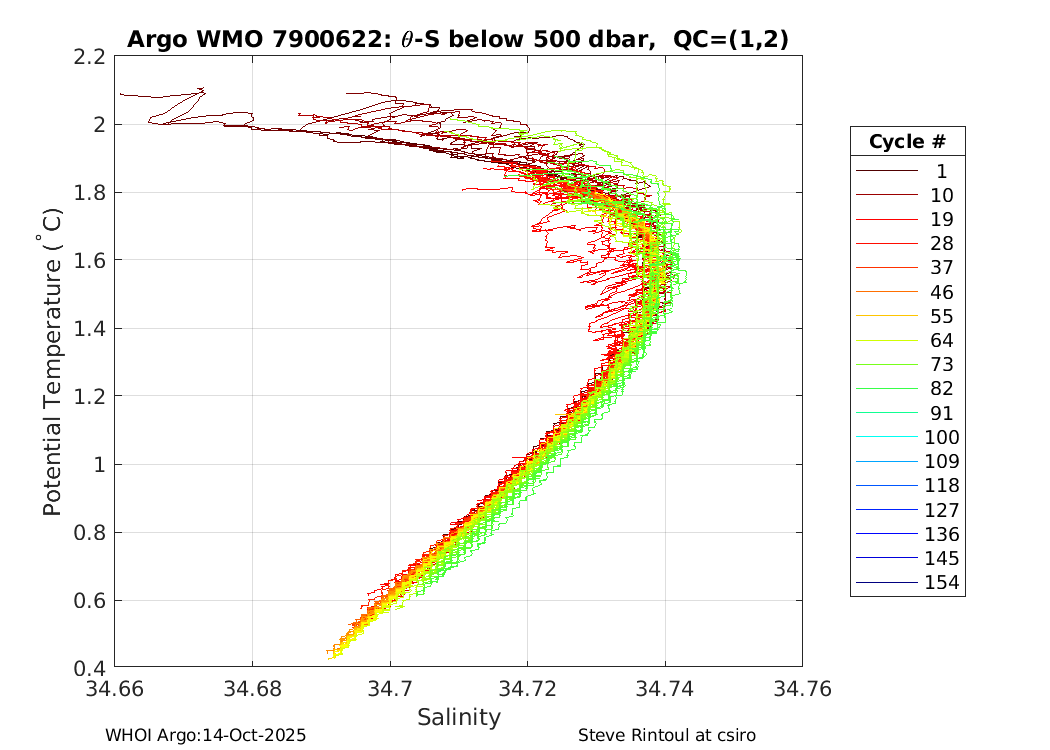 | WMO: #7900616 DAC: csiro PI: Susan Wijffels APEX: #7418 SBE41CP_V2: #7111 KISTLER: #4632598 Altimeter Comparison (IFREMER) EuroArgo Link | ![]() |