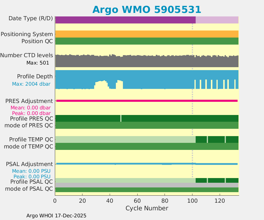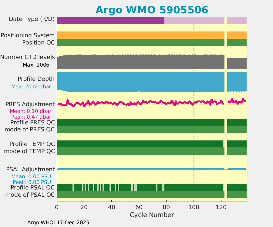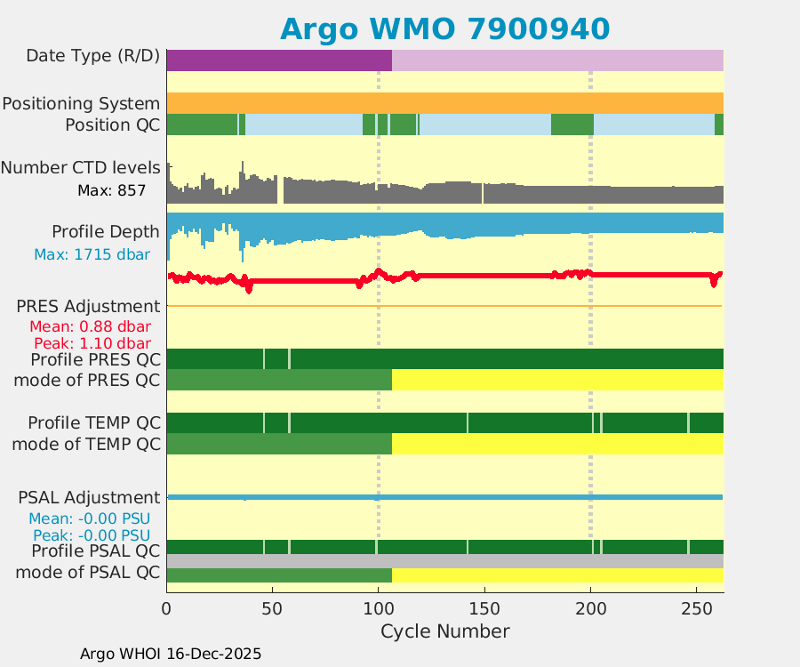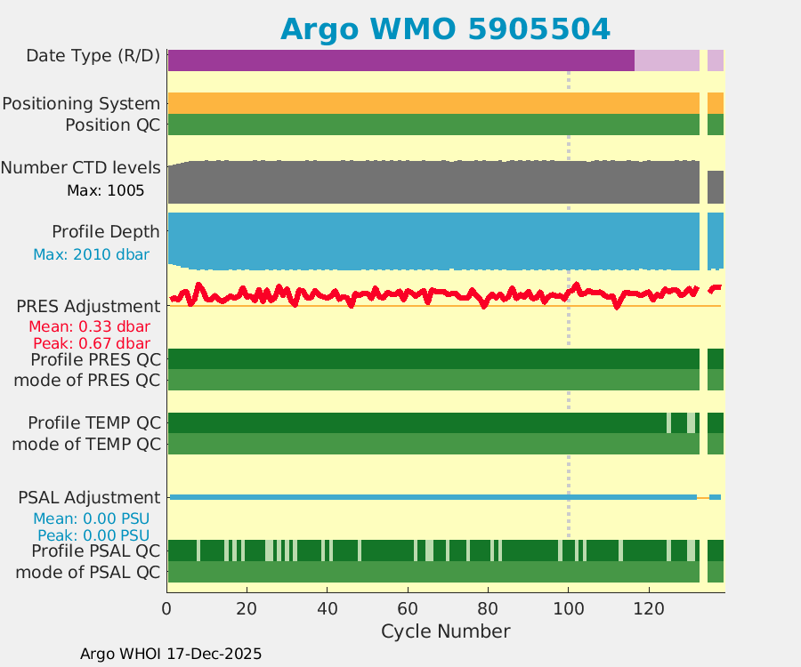 | WMO: #7900933 DAC: csiro PI: Peter OKE APEX: #9284 DRUCK: #11620511 SBE41CP: #13251 Altimeter Comparison (IFREMER) EuroArgo Link | ![]() |