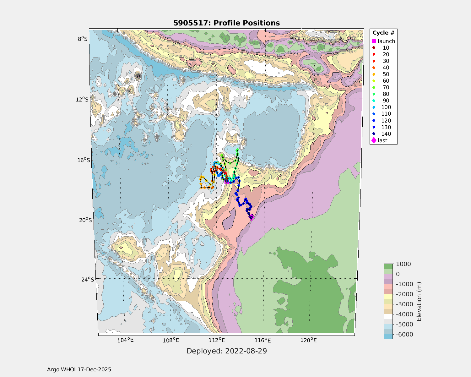 | WMO: #5905499 DAC: csiro PI: Peter OKE NAVIS_EBR: #1317 DRUCK: #11699977 SBE41CP: #14029 Altimeter Comparison (IFREMER) EuroArgo Link | ![]() |