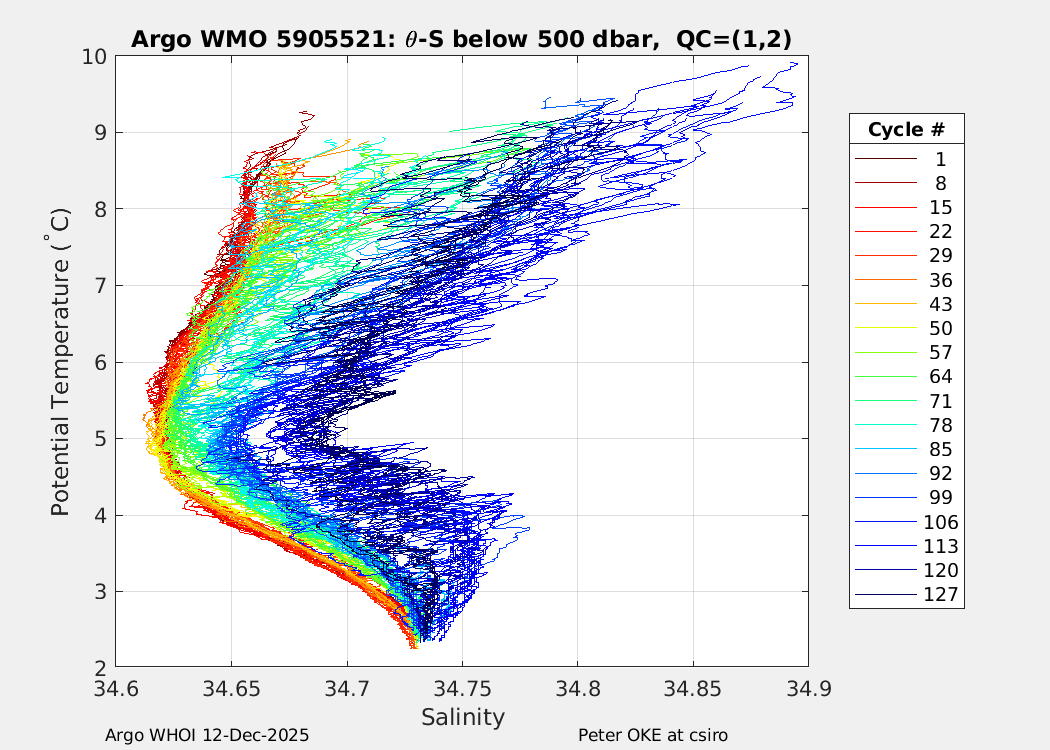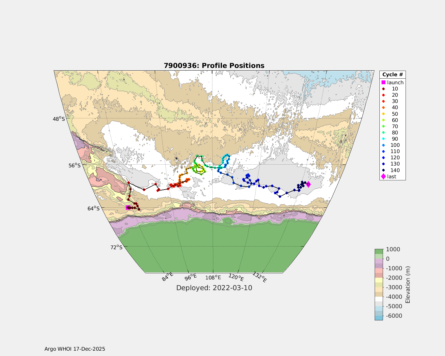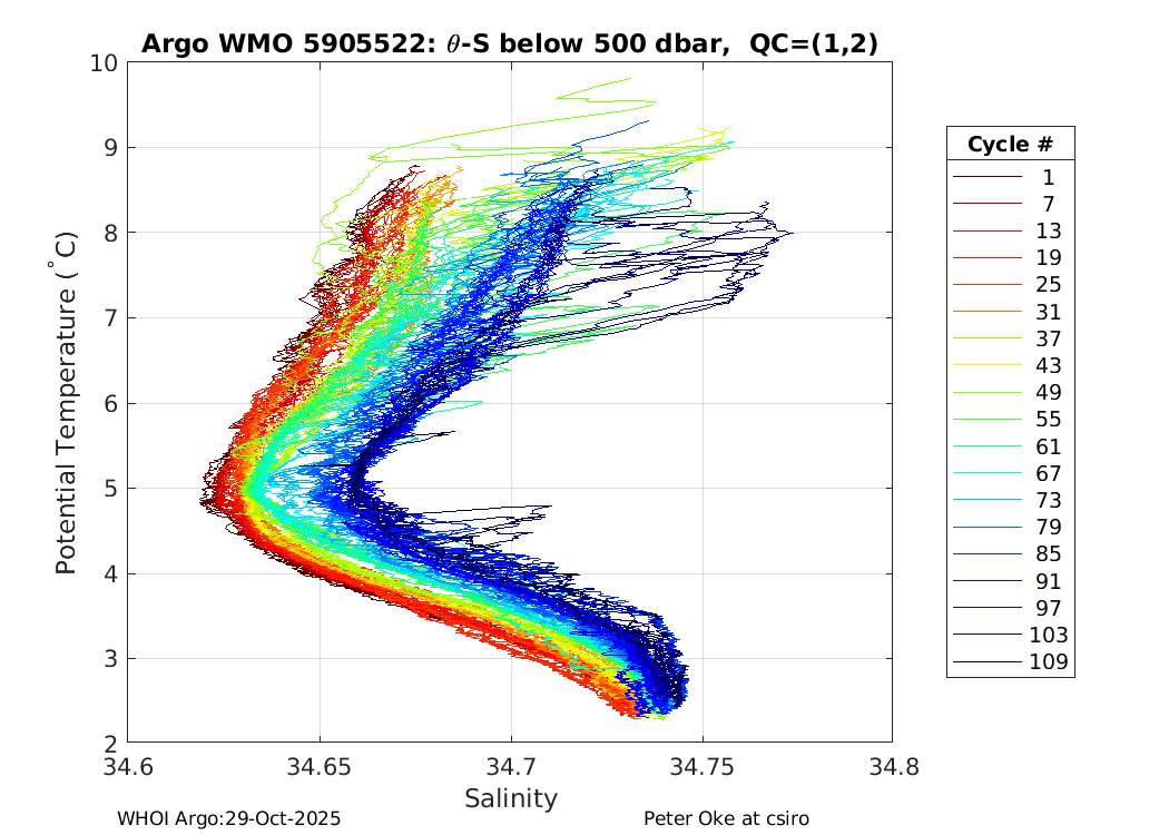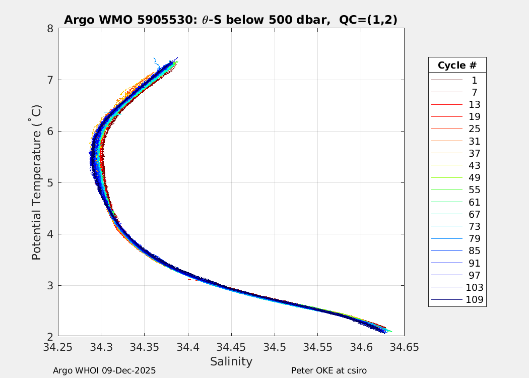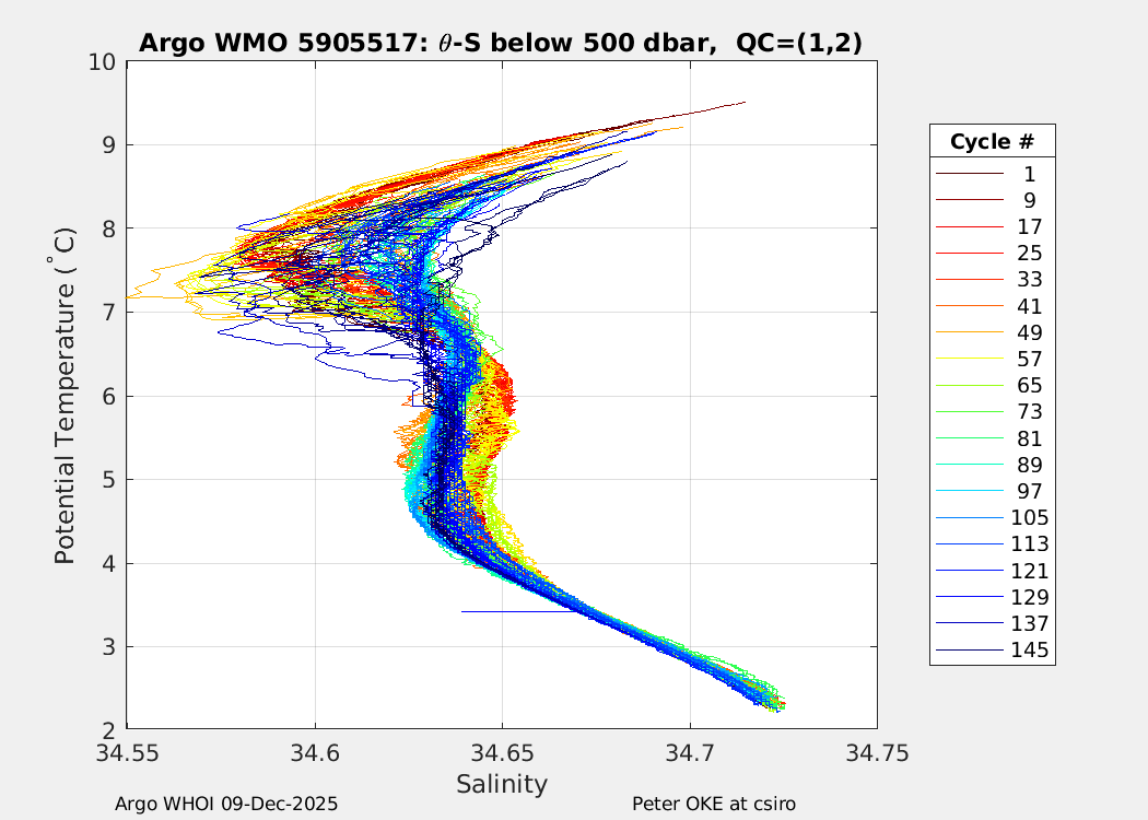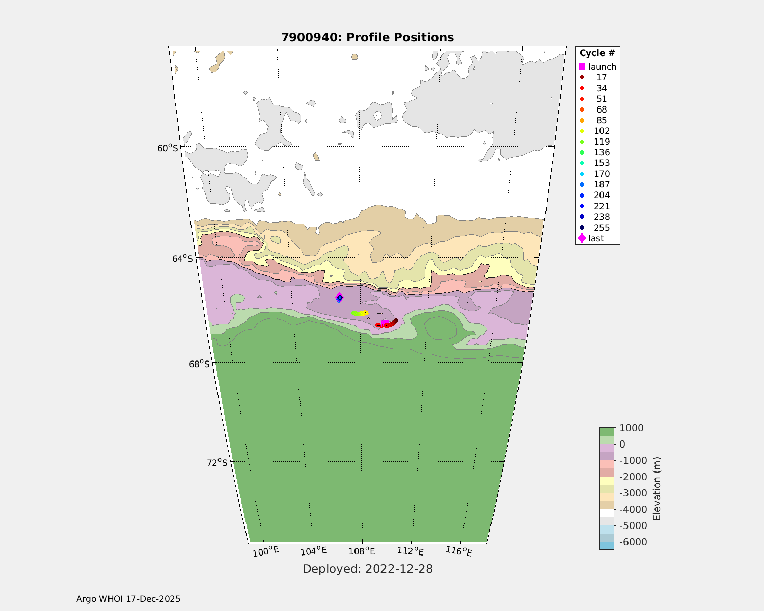 | WMO: #7900938 DAC: csiro PI: Peter Oke APEX: #9751 DRUCK: #12069360 SBE41CP_V7.2.5: #17235 Altimeter Comparison (IFREMER) EuroArgo Link | ![]() |
