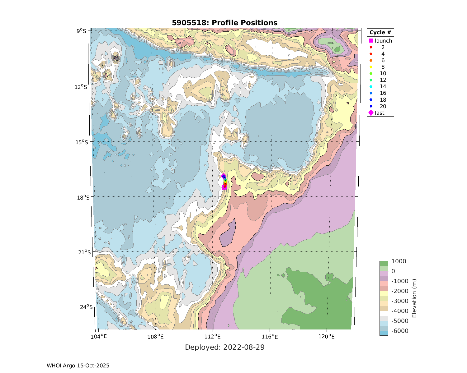| WMO: #5905512 DAC: csiro PI: Peter OKE NAVIS_EBR: #1074 DRUCK: #10970100 SBE41CP: #11418 Altimeter Comparison (IFREMER) EuroArgo Link | ![]() |