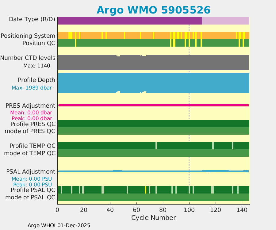 | WMO: #5905525 DAC: csiro PI: Peter OKE APEX: #9293 DRUCK: #11620492 SBE41CP: #13380 Altimeter Comparison (IFREMER) EuroArgo Link | ![]() |