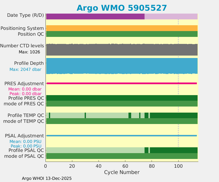 | WMO: #5905518 DAC: csiro PI: Peter Oke ALTO: #11098 RBR_PRES_A: #203706 RBR_ARGO3: #203706 Altimeter Comparison (IFREMER) EuroArgo Link | ![]() |