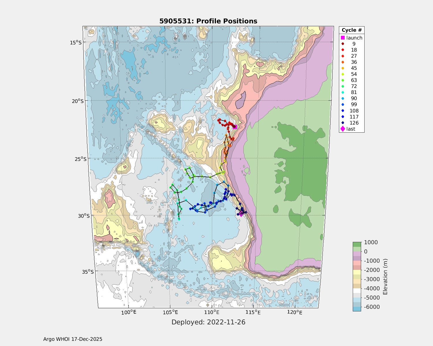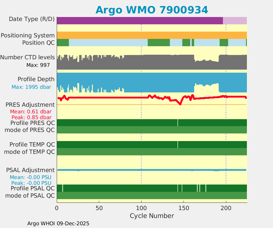 | WMO: #7900930 DAC: csiro PI: Peter Oke APEX: #9285 DRUCK: #11623583 SBE41CP_V7.2.5: #13247 Altimeter Comparison (IFREMER) EuroArgo Link | ![]() |