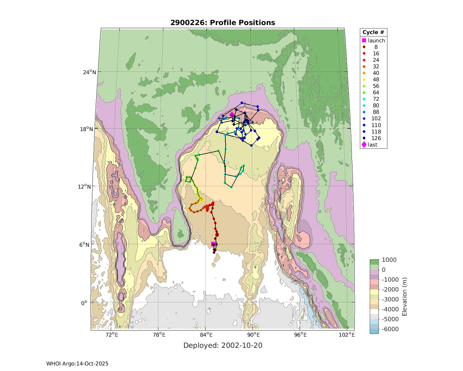| WMO: #2900229 DAC: incois PI: M Ravichandran APEX: #759 SBE41: #789 PAINE: #200362 Altimeter Comparison (IFREMER) EuroArgo Link | ![]() |