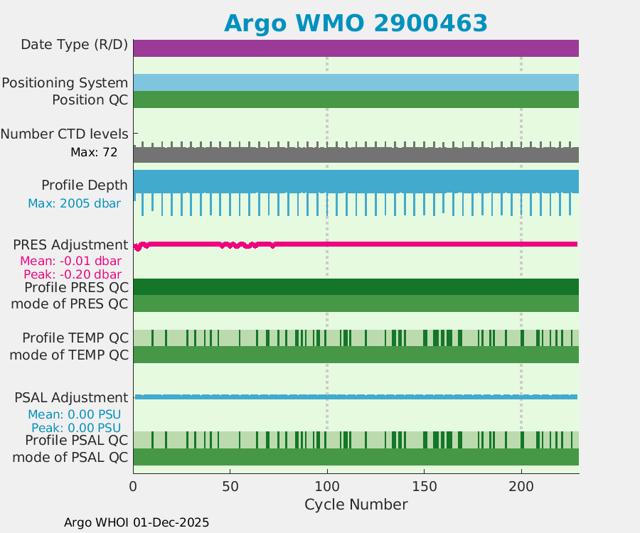 | WMO: #2900459 DAC: incois PI: M Ravichandran APEX: #755 SBE41: #810 DRUCK: #4793 Altimeter Comparison (IFREMER) EuroArgo Link | ![]() |
