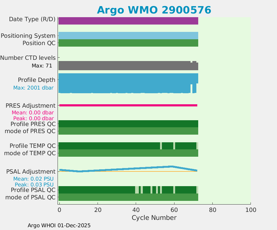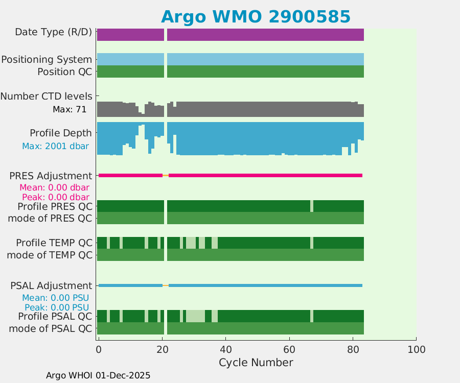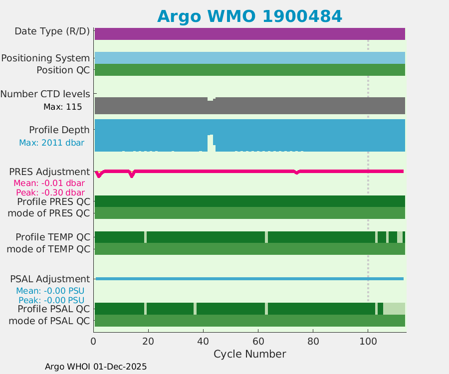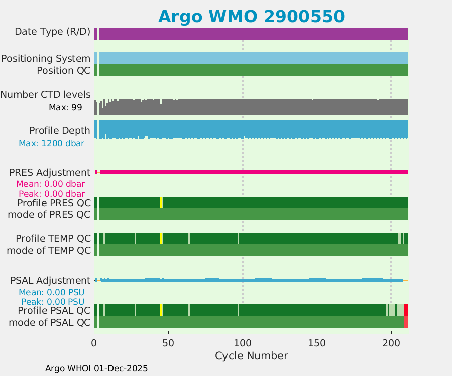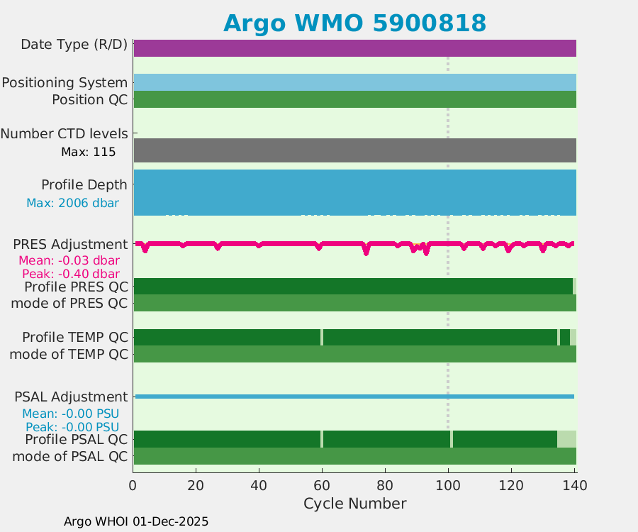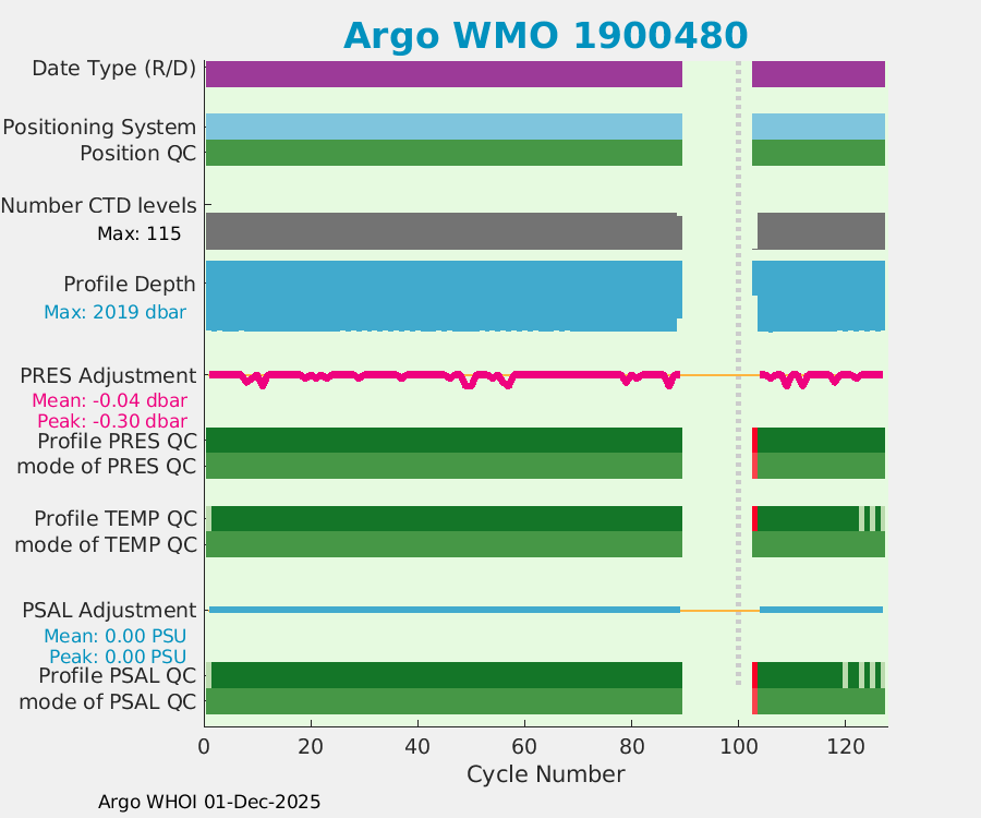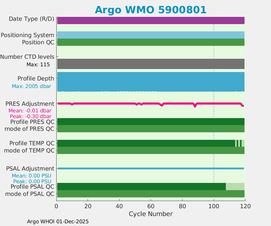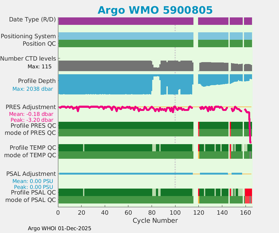 | WMO: #1900477 DAC: jma PI: JAMSTEC APEX: #1696 DRUCK: #6588 SBE41: #1770 Altimeter Comparison (IFREMER) EuroArgo Link | ![]() |