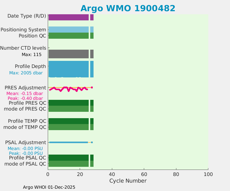 | WMO: #1900484 DAC: jma PI: JAMSTEC APEX: #1619 DRUCK: #6382 SBE41: #1715 Altimeter Comparison (IFREMER) EuroArgo Link | ![]() |