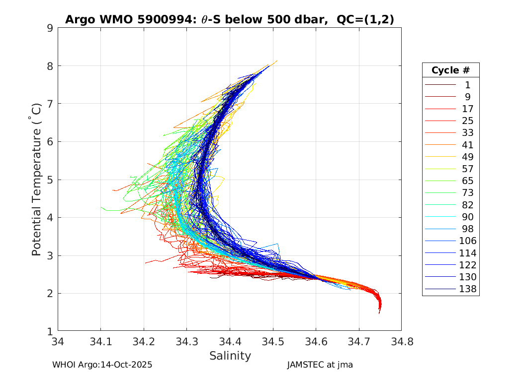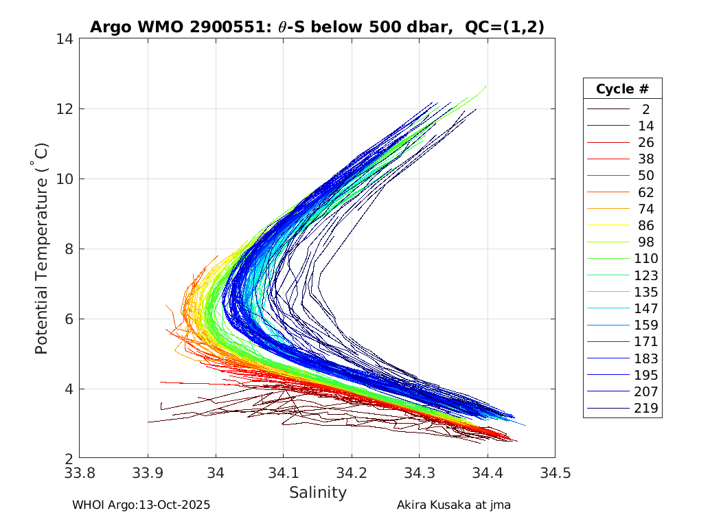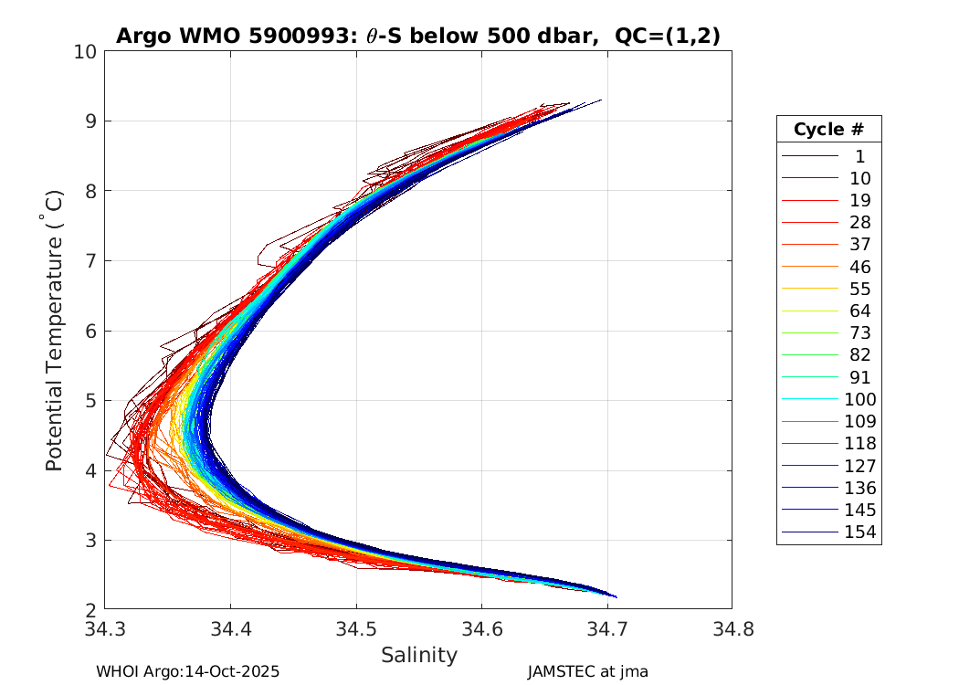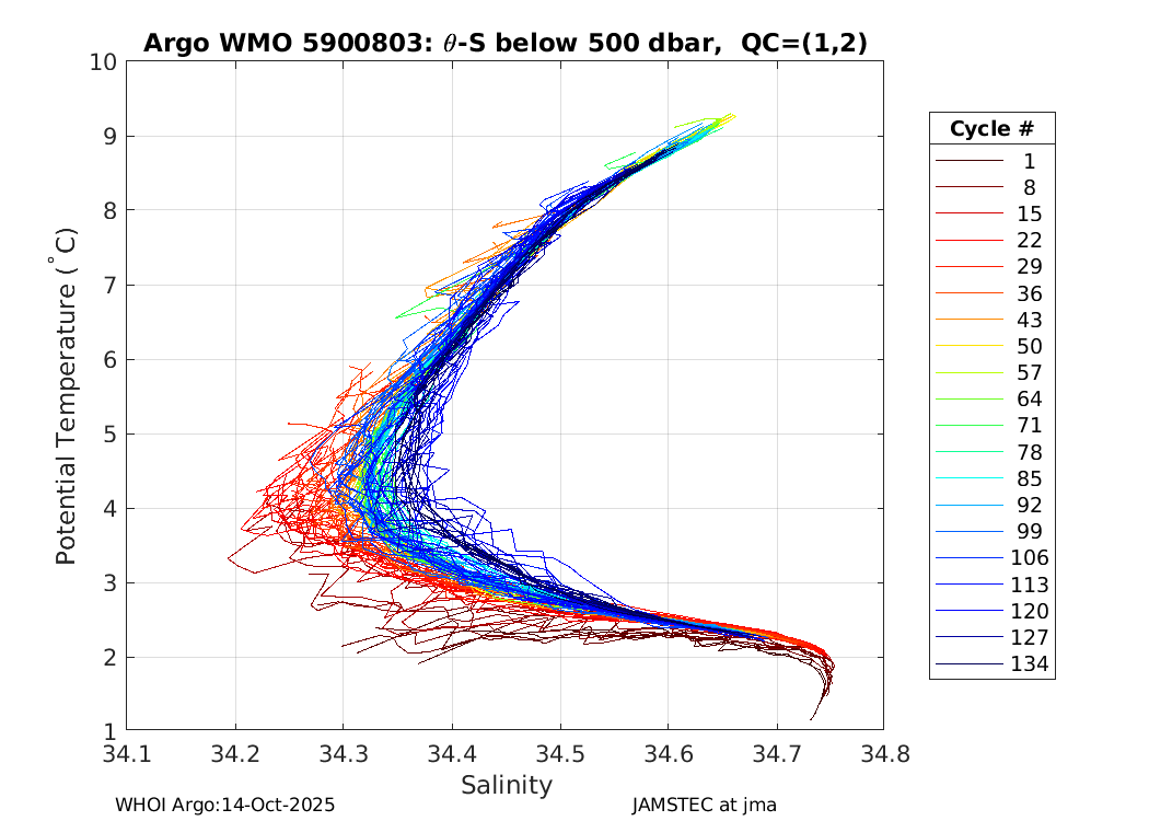 | WMO: #2900514 DAC: jma PI: JAMSTEC APEX: #2033 SBE41_V2.5: #2141 AANDERAA_OPTODE_3830: #547 Altimeter Comparison (IFREMER) EuroArgo Link | ![]() |