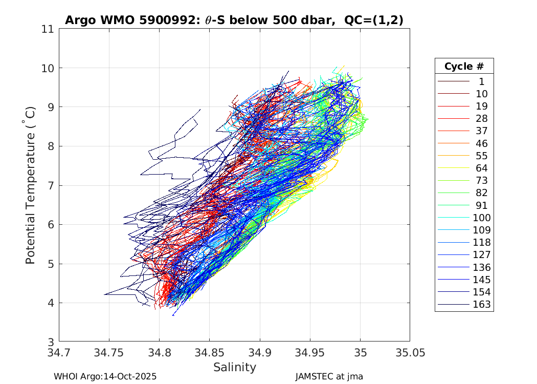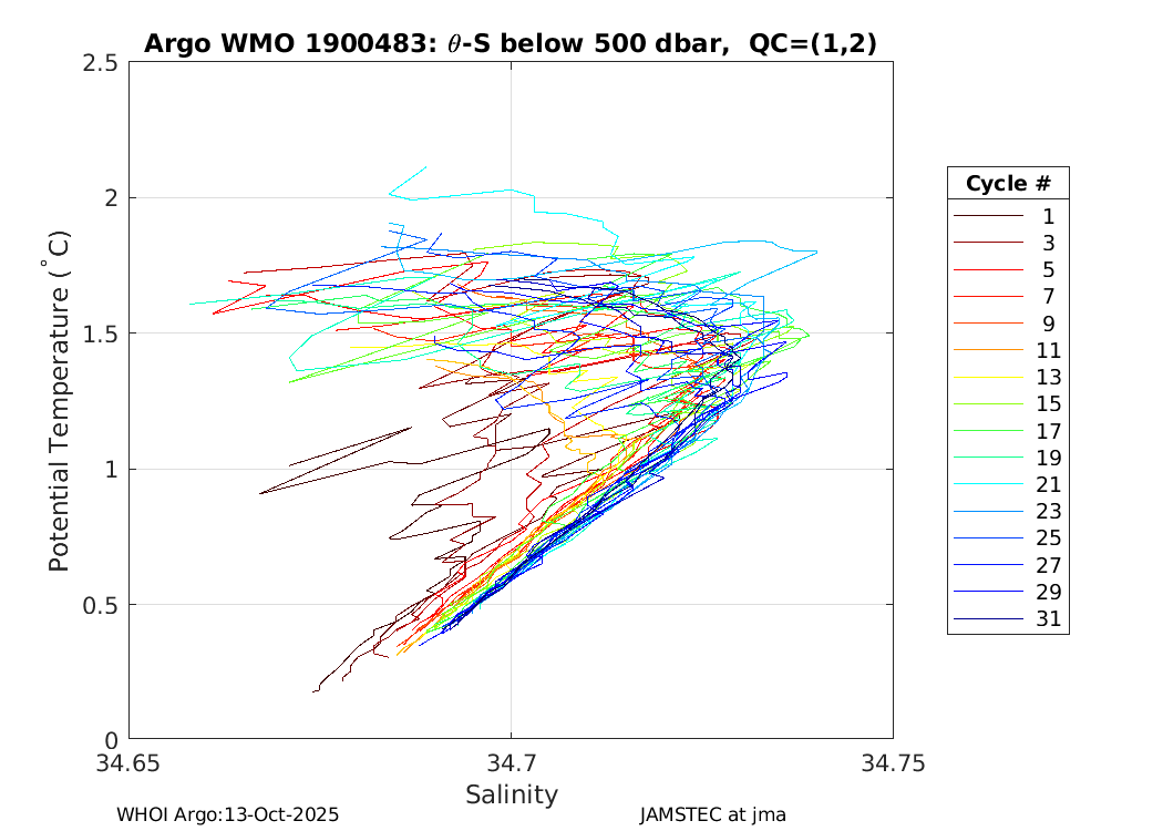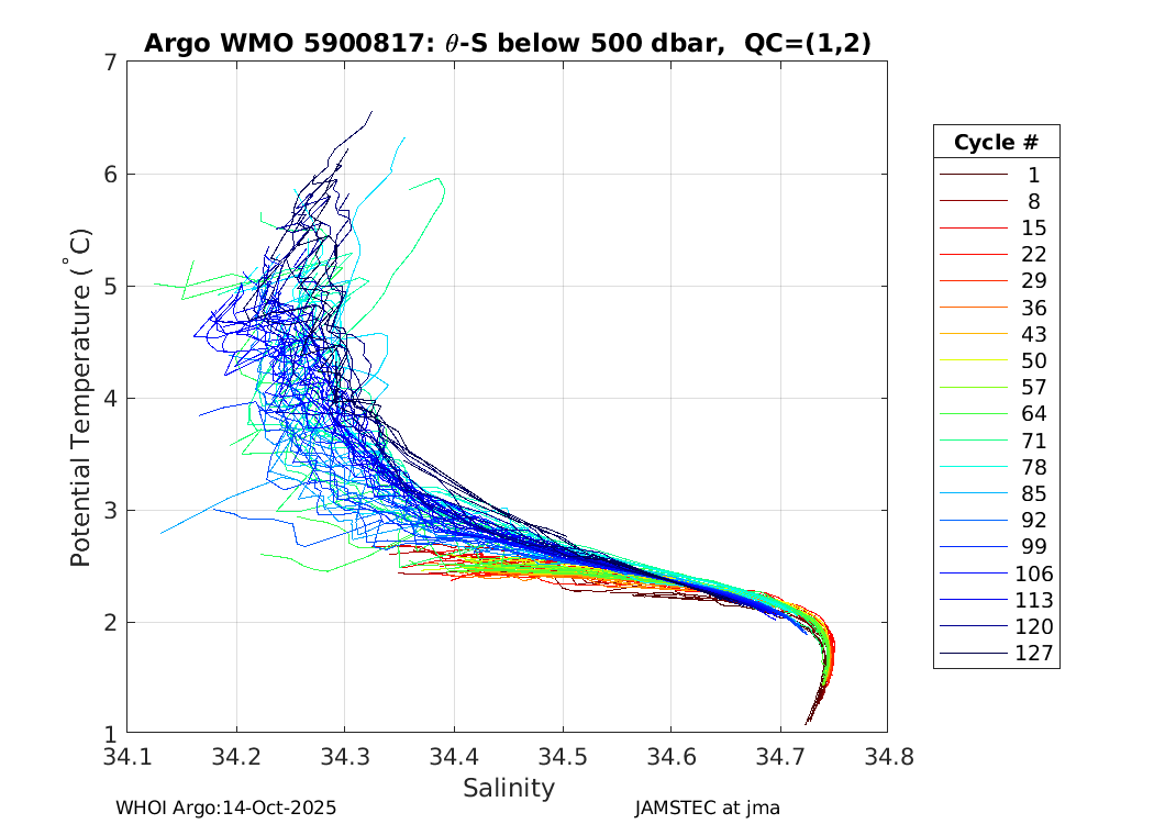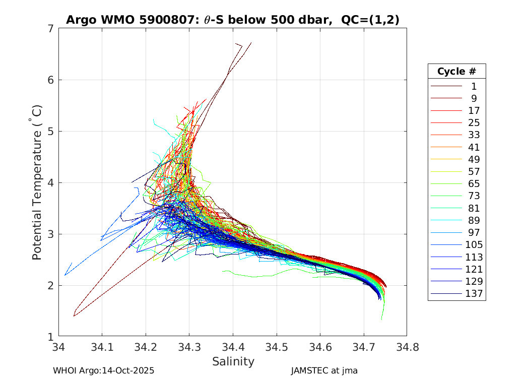 | WMO: #2900514 DAC: jma PI: JAMSTEC APEX: #2033 SBE41_V2.5: #2141 AANDERAA_OPTODE_3830: #547 Altimeter Comparison (IFREMER) EuroArgo Link | ![]() |