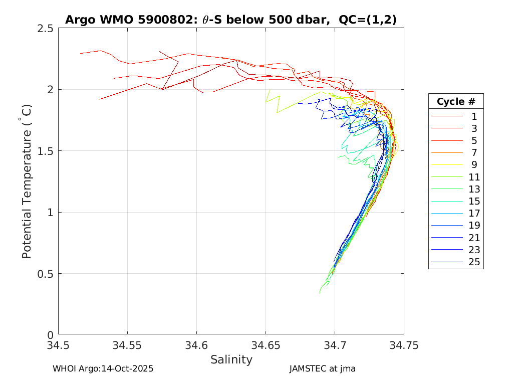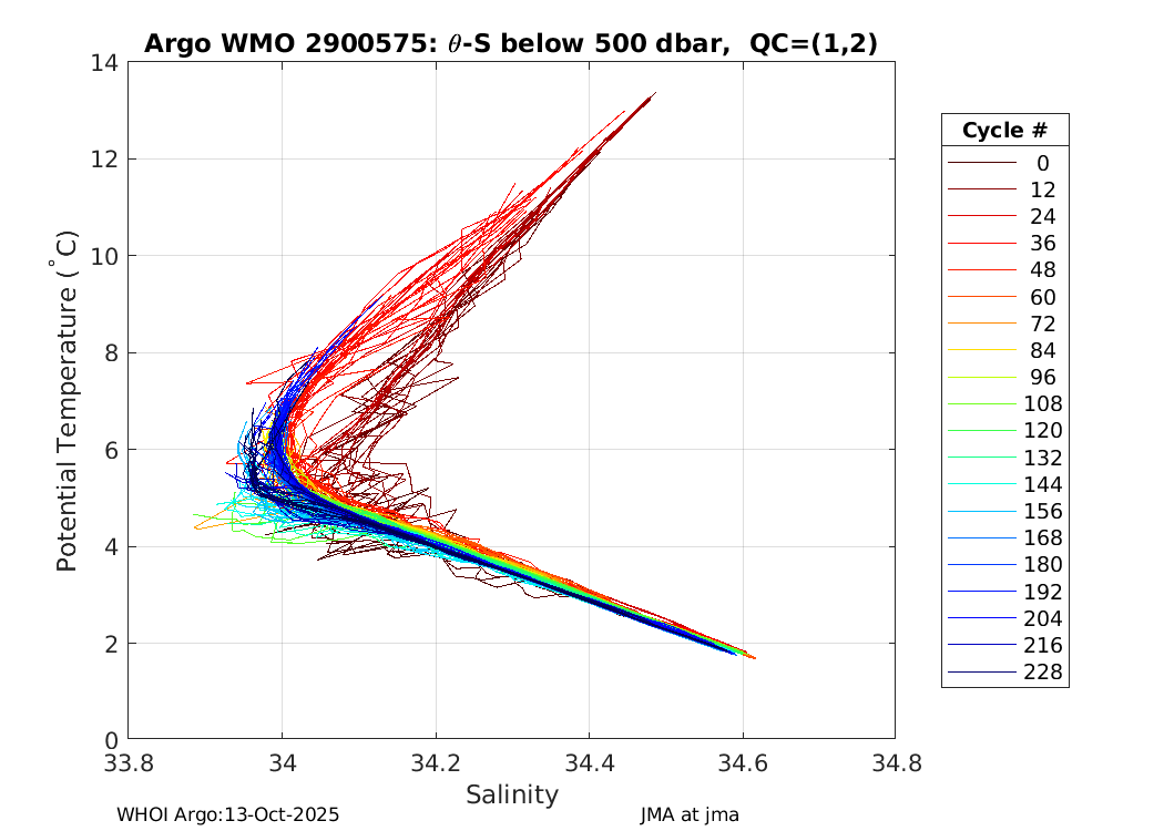 | WMO: #2900542 DAC: jma PI: JAMSTEC APEX: #2034 SBE41_V2.5: #2142 AANDERAA_OPTODE_3830: #537 Altimeter Comparison (IFREMER) EuroArgo Link | ![]() |