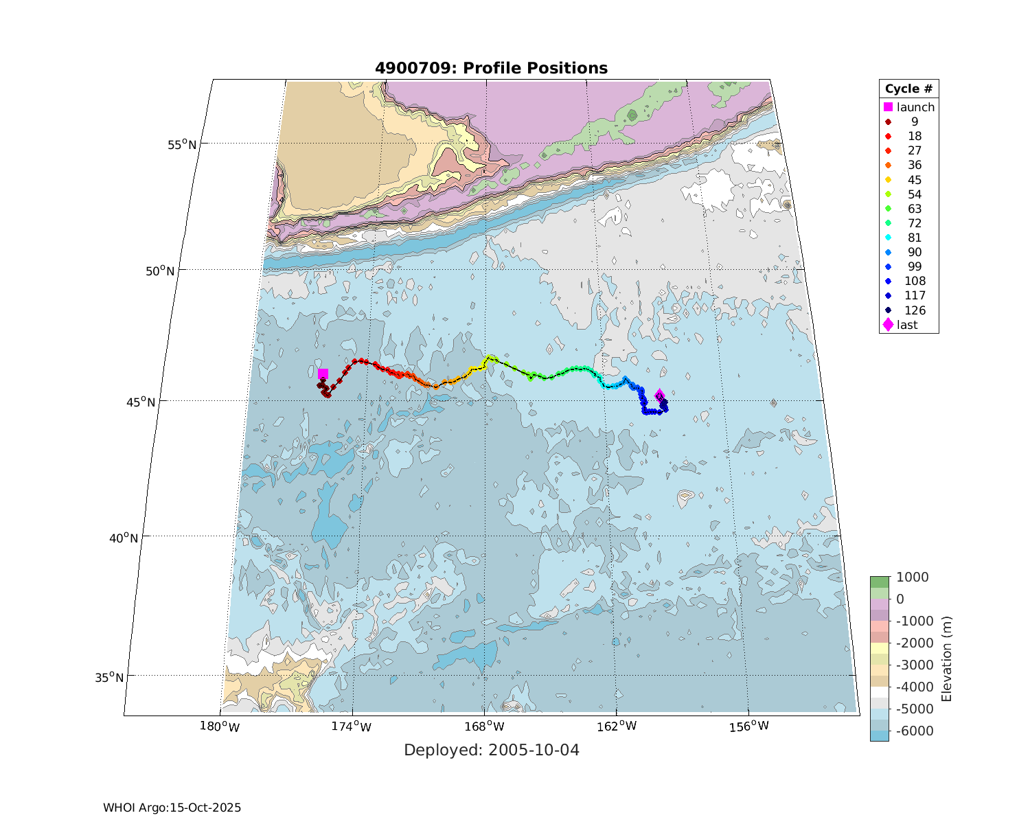 | WMO: #4900709 DAC: jma PI: JAMSTEC APEX: #2279 DRUCK: #8165 SBE41: #2392 Altimeter Comparison (IFREMER) EuroArgo Link | ![]() |