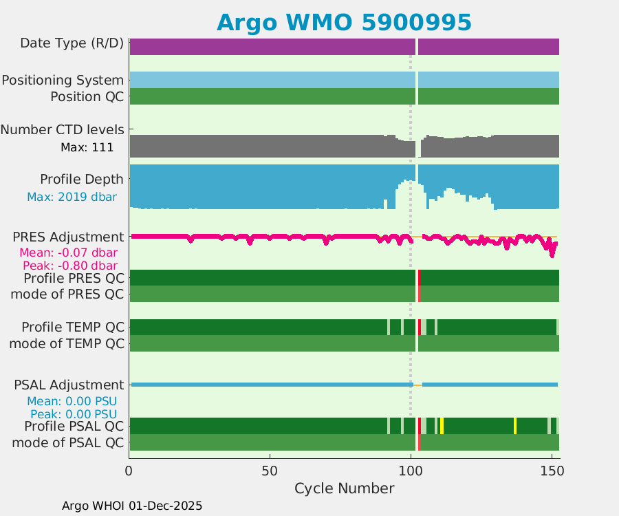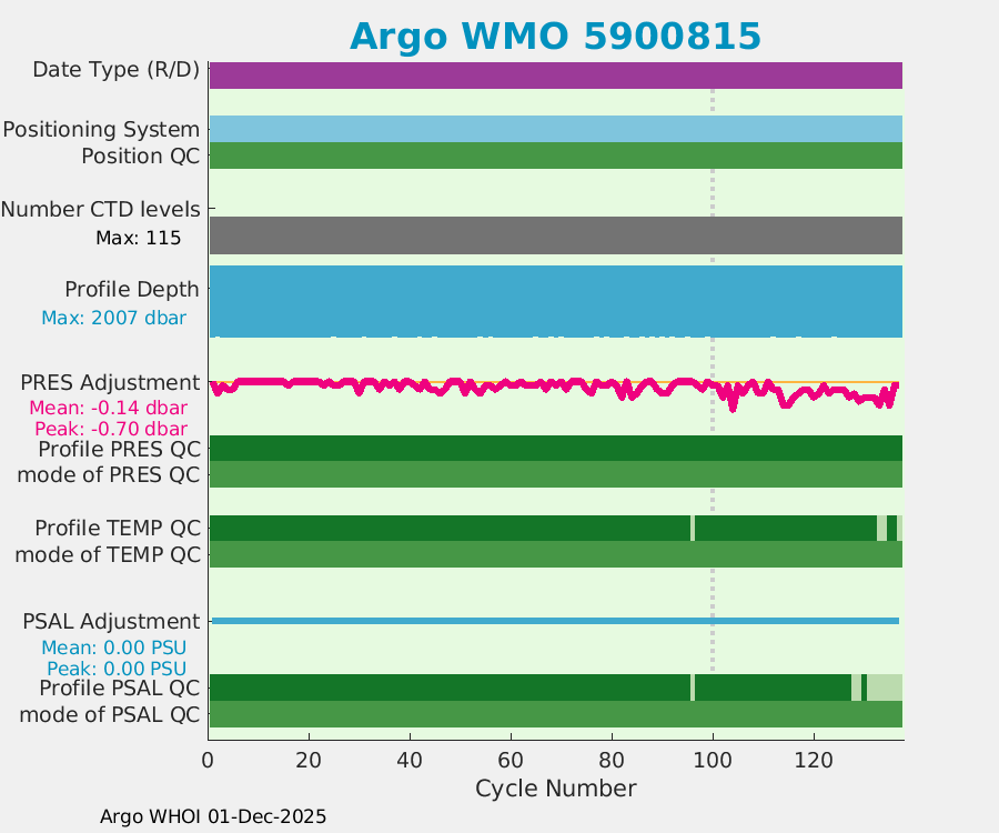 | WMO: #5900991 DAC: jma PI: JAMSTEC APEX: #1583 DRUCK: #6230 SBE41: #1657 Altimeter Comparison (IFREMER) EuroArgo Link | ![]() |