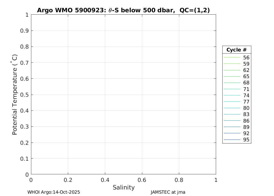 | WMO: #2900469 DAC: jma PI: JAMSTEC APEX: #1573 DRUCK: #6242 SBE41: #1647 Altimeter Comparison (IFREMER) EuroArgo Link | ![]() |