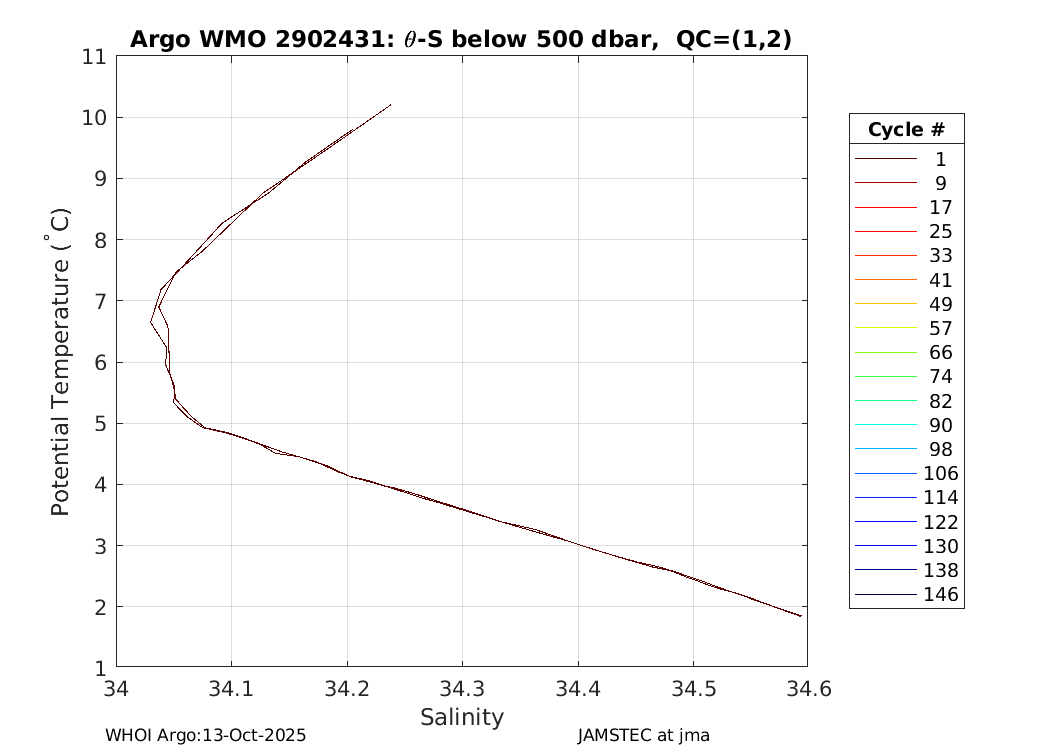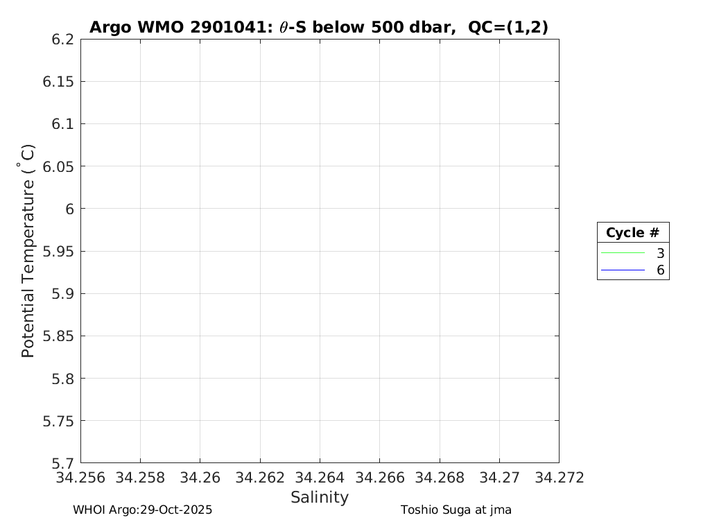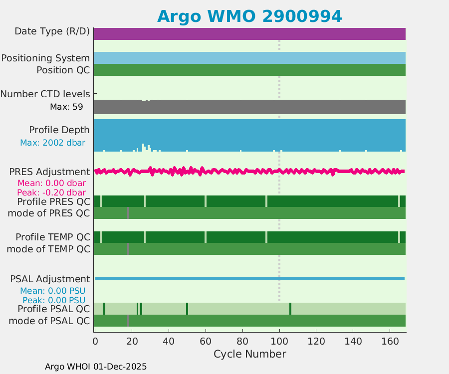 | WMO: #2901048 DAC: jma PI: JAMSTEC PROVOR: #10001 DRUCK: #2736910 SBE41CP_V2: #2696 Altimeter Comparison (IFREMER) EuroArgo Link | n/a | n/a | ![]() |