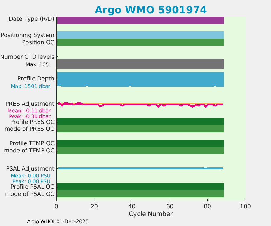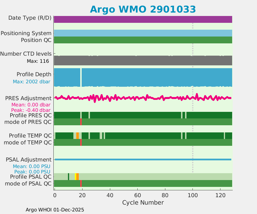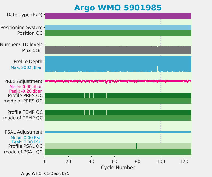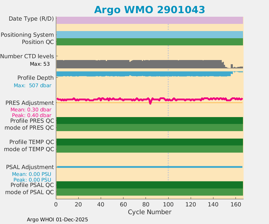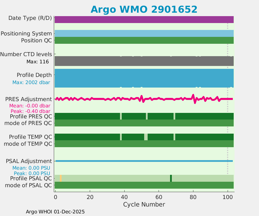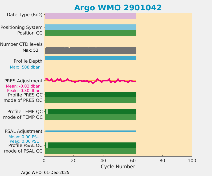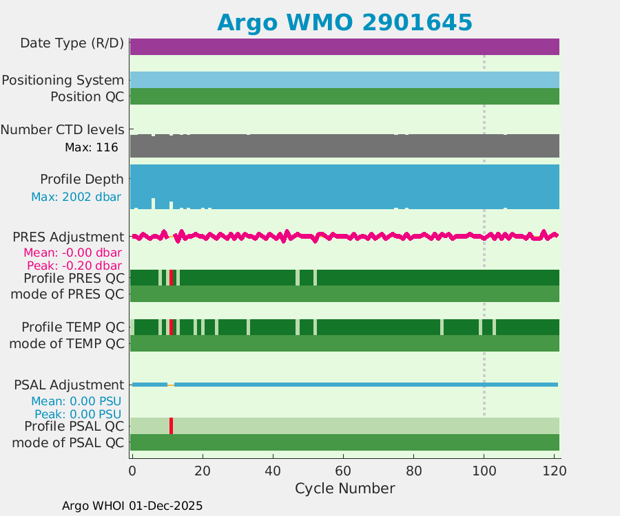 | WMO: #2901063 DAC: jma PI: JAMSTEC PROVOR: #10040 DRUCK: #3053749 SBE41CP_V2: #2972 Altimeter Comparison (IFREMER) EuroArgo Link | ![]() |