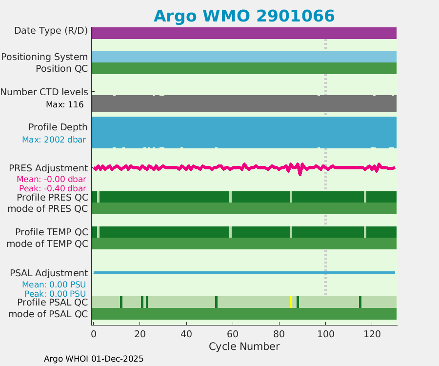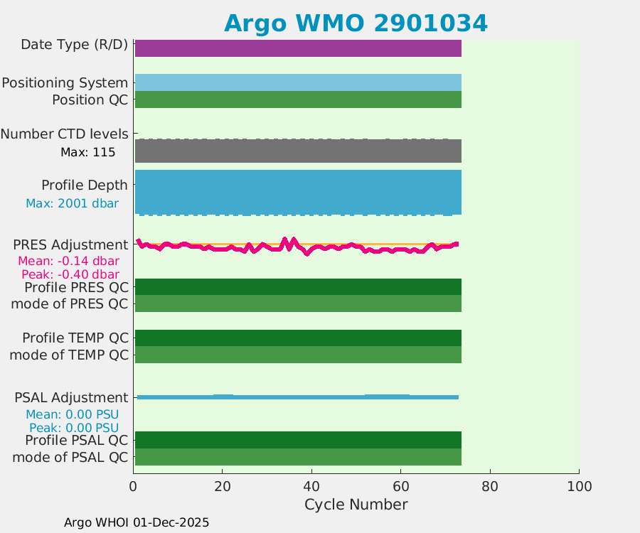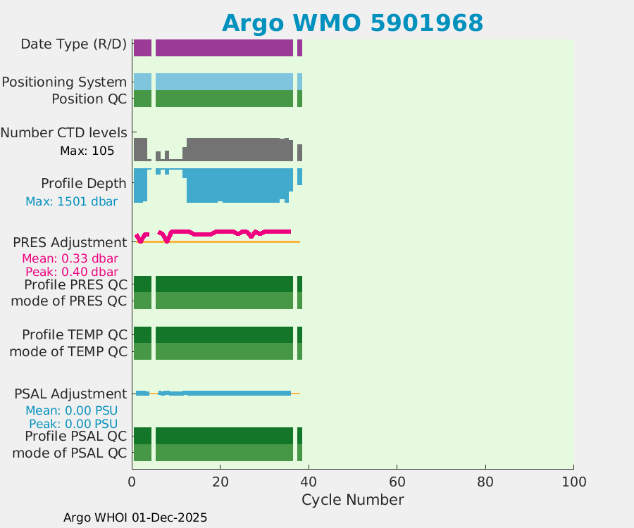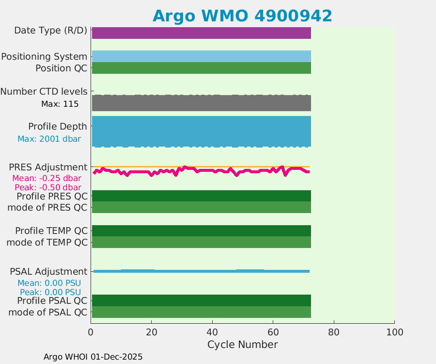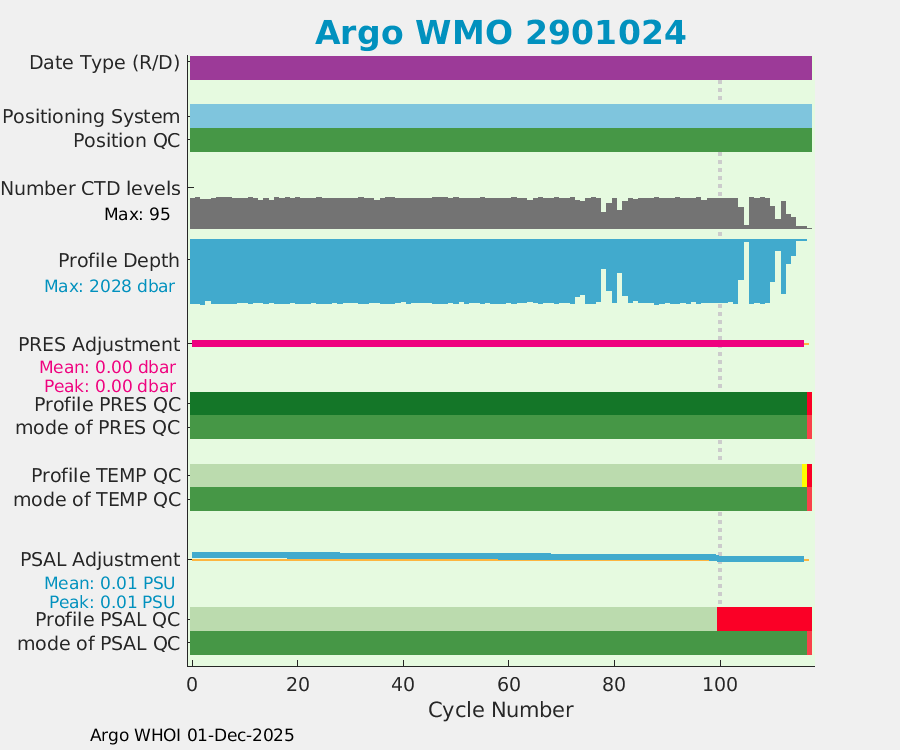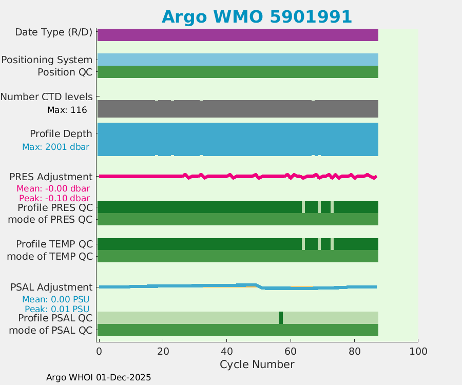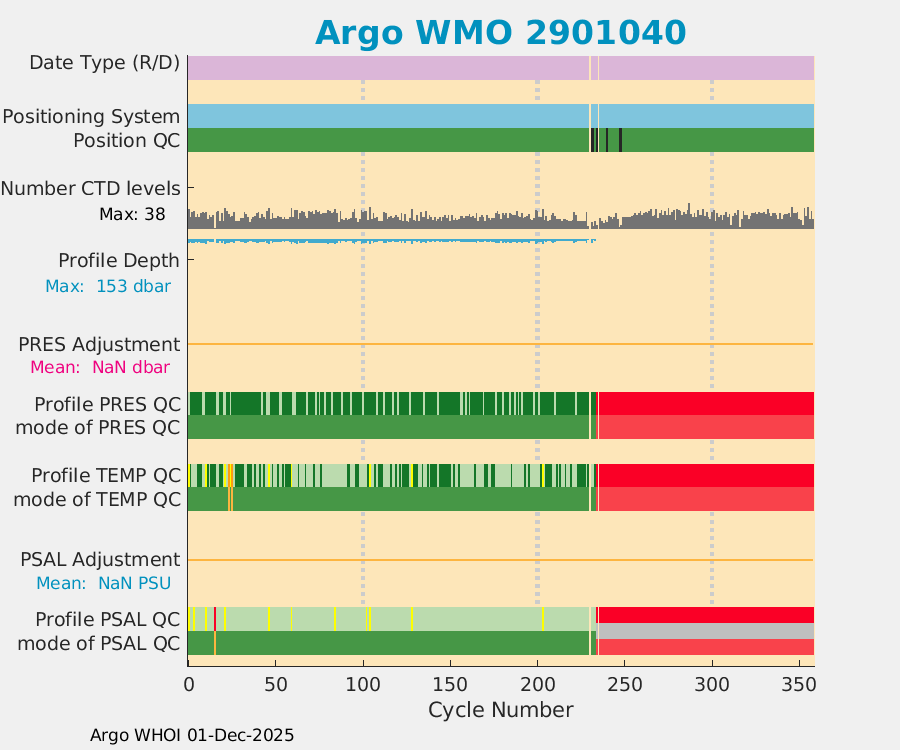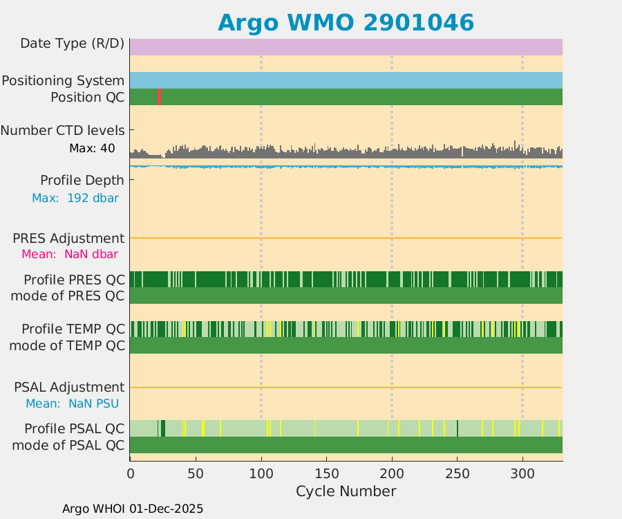 | WMO: #2901063 DAC: jma PI: JAMSTEC PROVOR: #10040 DRUCK: #3053749 SBE41CP_V2: #2972 Altimeter Comparison (IFREMER) EuroArgo Link | ![]() |