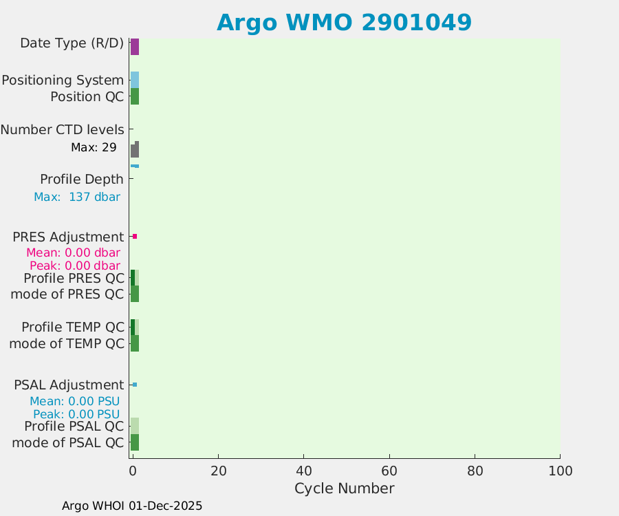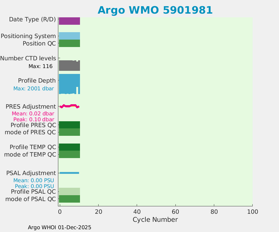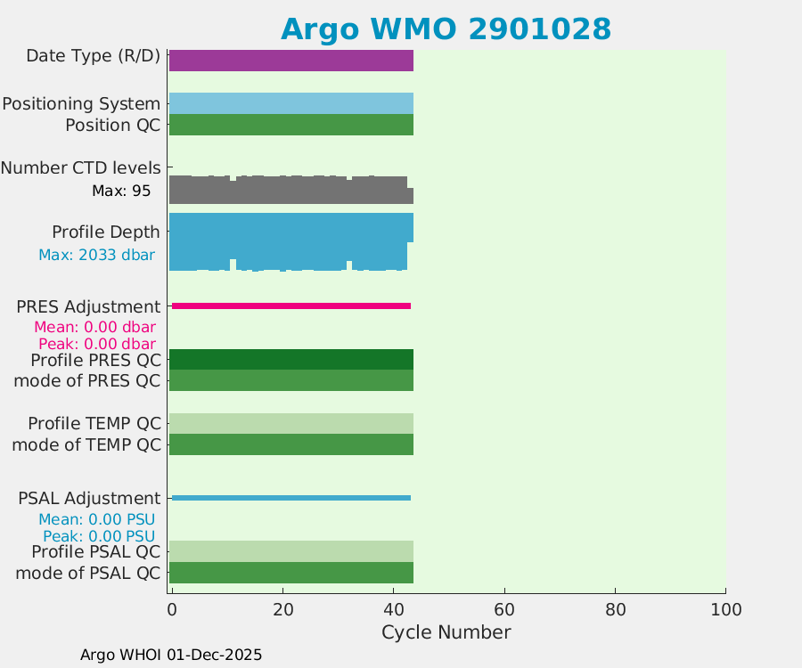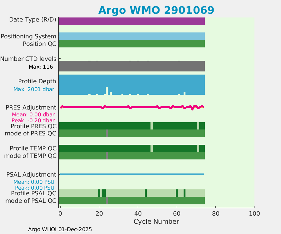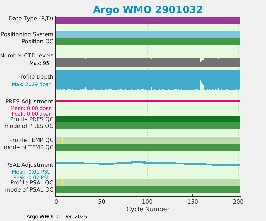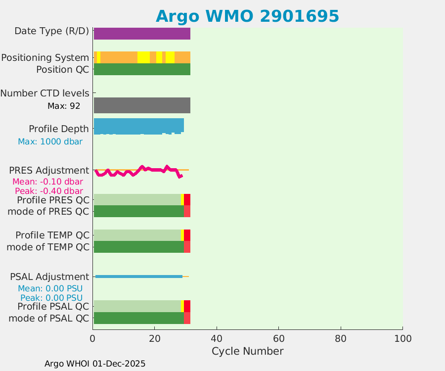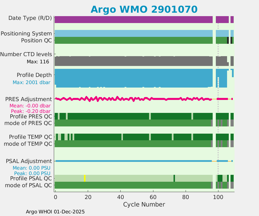 | WMO: #2901063 DAC: jma PI: JAMSTEC PROVOR: #10040 DRUCK: #3053749 SBE41CP_V2: #2972 Altimeter Comparison (IFREMER) EuroArgo Link | ![]() |