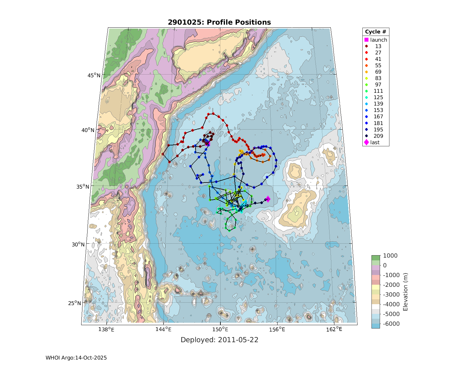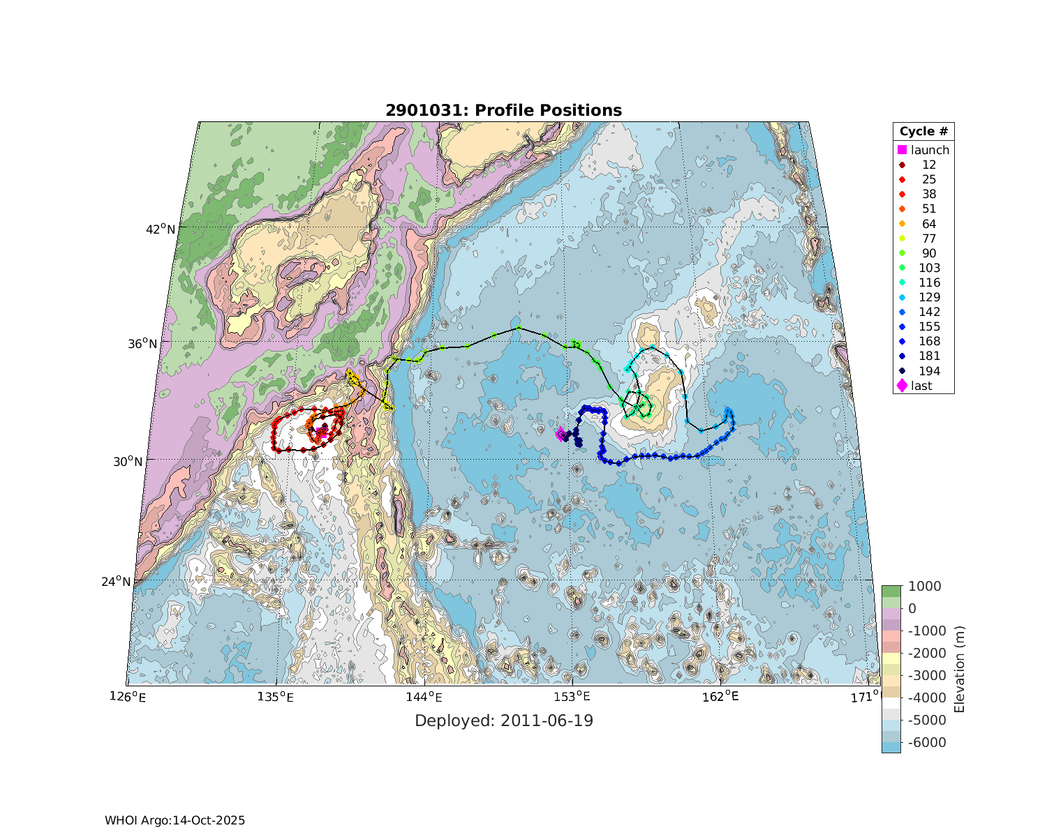 | WMO: #2901025 DAC: jma PI: JMA ARVOR: # KISTLER: #2080527 SBE41: #3294 Altimeter Comparison (IFREMER) EuroArgo Link | ![]() |