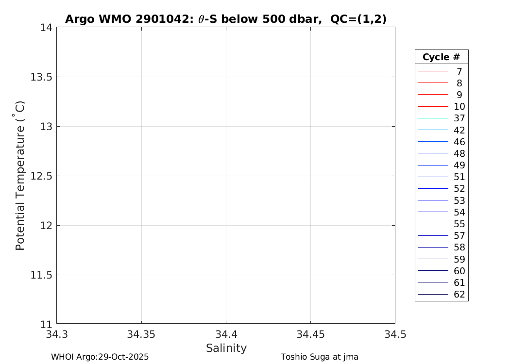 | WMO: #2901043 DAC: jma PI: Toshio Suga APEX: #3757 SBE41_IDO_V3.0: #4033 SBE43I: #0294 Altimeter Comparison (IFREMER) EuroArgo Link | ![]() |