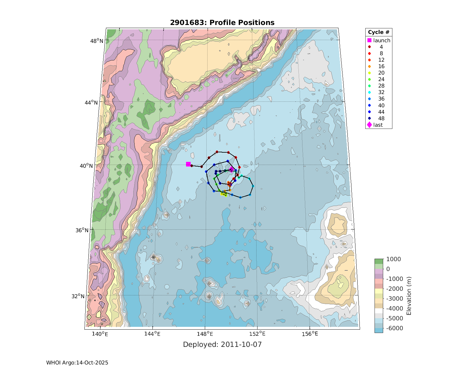 | WMO: #2901990 DAC: jma PI: Satoshi Mitarai NEMO: #205 KISTLER: #2077487 SBE41: #5433 Altimeter Comparison (IFREMER) EuroArgo Link | ![]() |