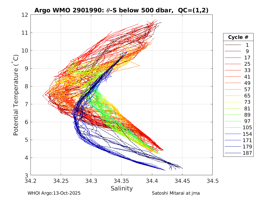 | WMO: #5901971 DAC: jma PI: JAMSTEC APEX: #5178 KISTLER: #2080578 SBE41_V3: #5046 Altimeter Comparison (IFREMER) EuroArgo Link | ![]() |