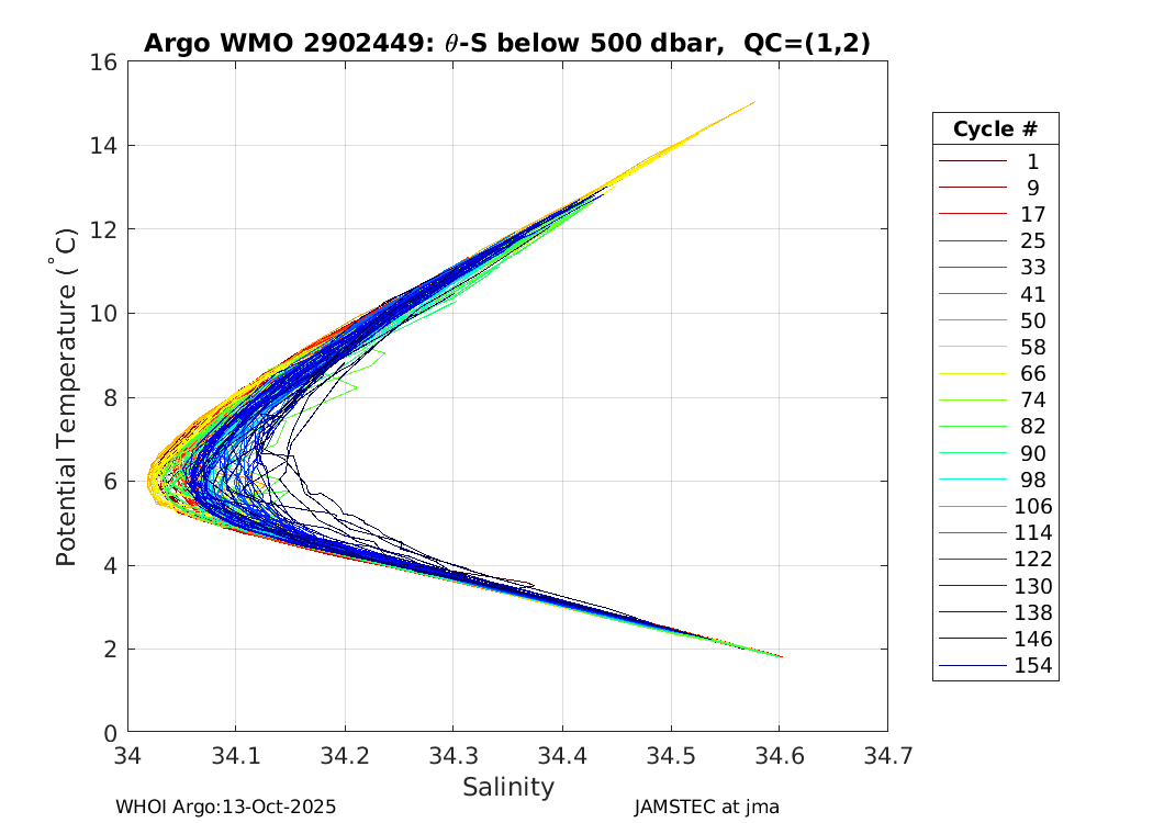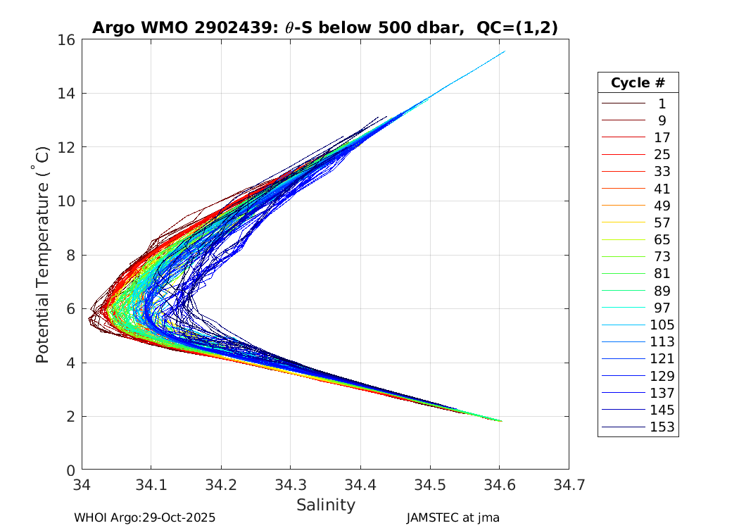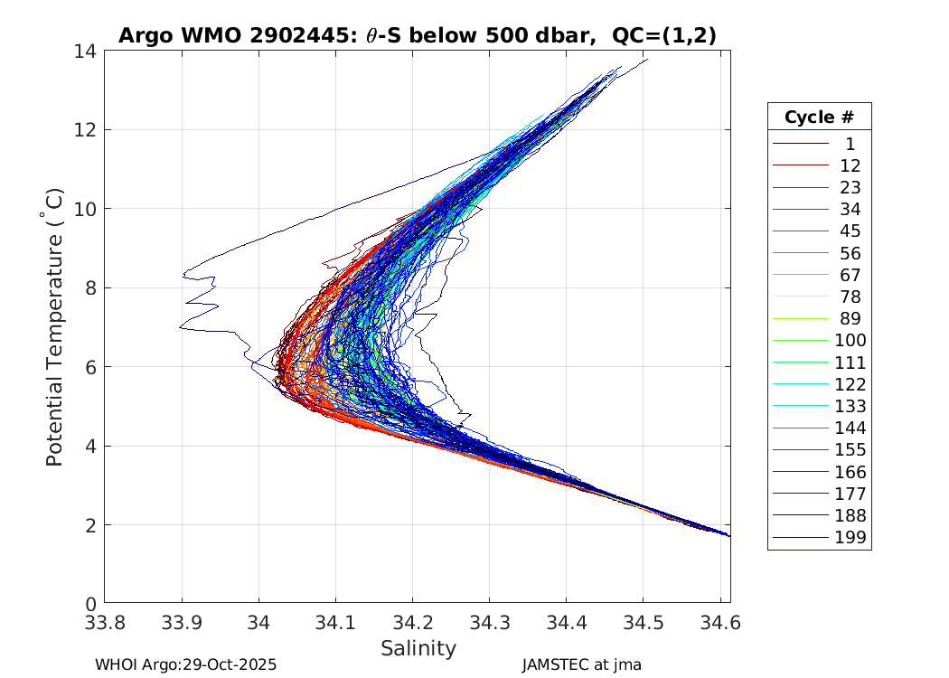 | WMO: #2902445 DAC: jma PI: JAMSTEC APEX: #4985 SBE41CP_V2: #3000 AANDERAA_OPTODE_3830: #1241 Altimeter Comparison (IFREMER) EuroArgo Link | ![]() |