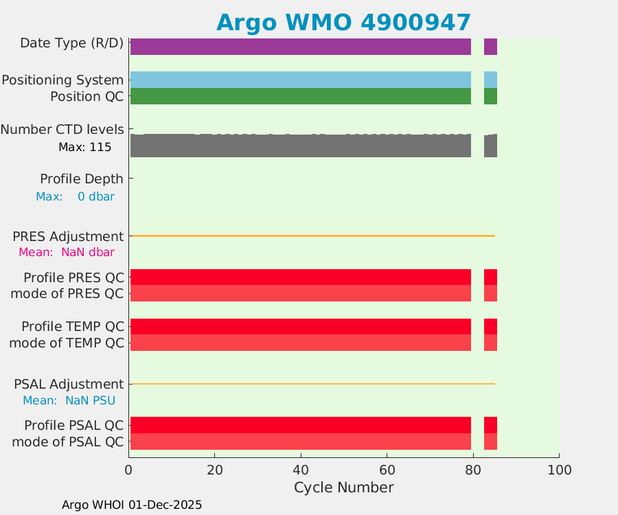 | WMO: #2901047 DAC: jma PI: JAMSTEC PROVOR: #10005 DRUCK: #2711846 SBE41CP_V2: #2712 Altimeter Comparison (IFREMER) EuroArgo Link | n/a | n/a | ![]() |