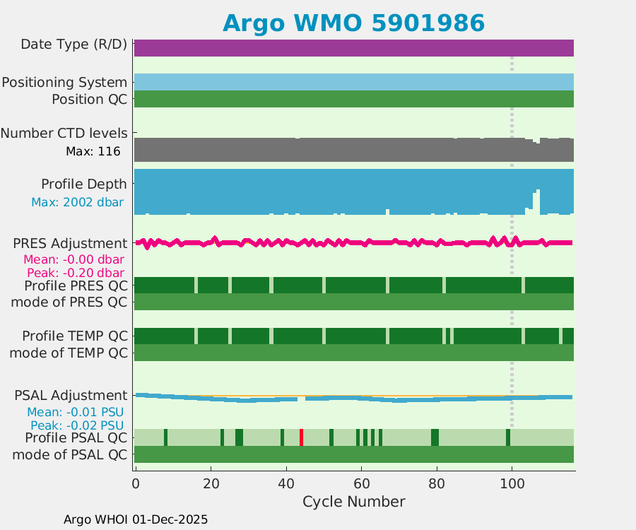 | WMO: #5901977 DAC: jma PI: JAMSTEC APEX: #5252 DRUCK: #3155231 SBE41_V3: #5149 Altimeter Comparison (IFREMER) EuroArgo Link | ![]() |