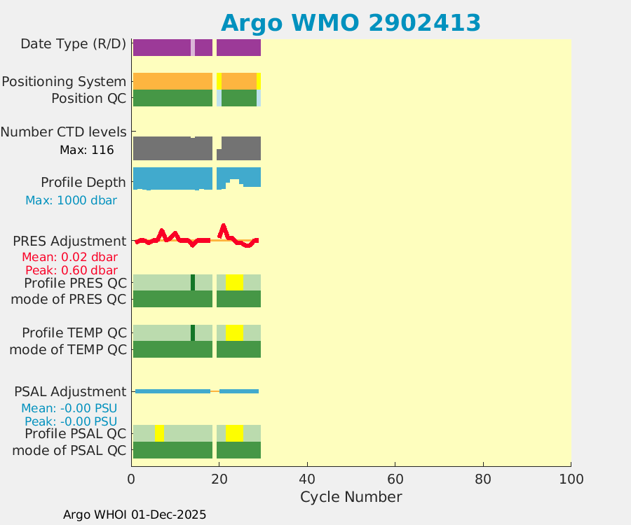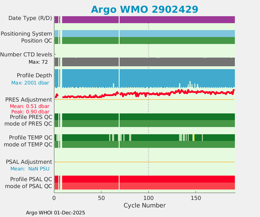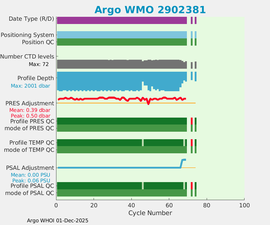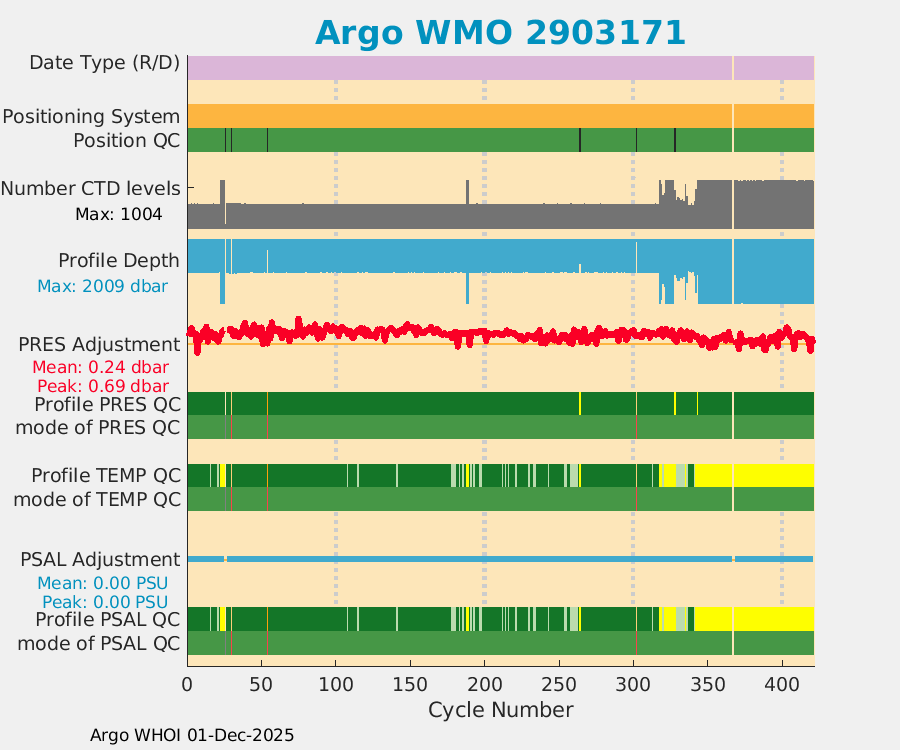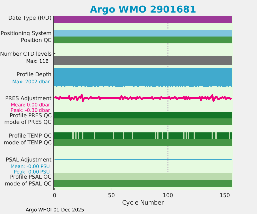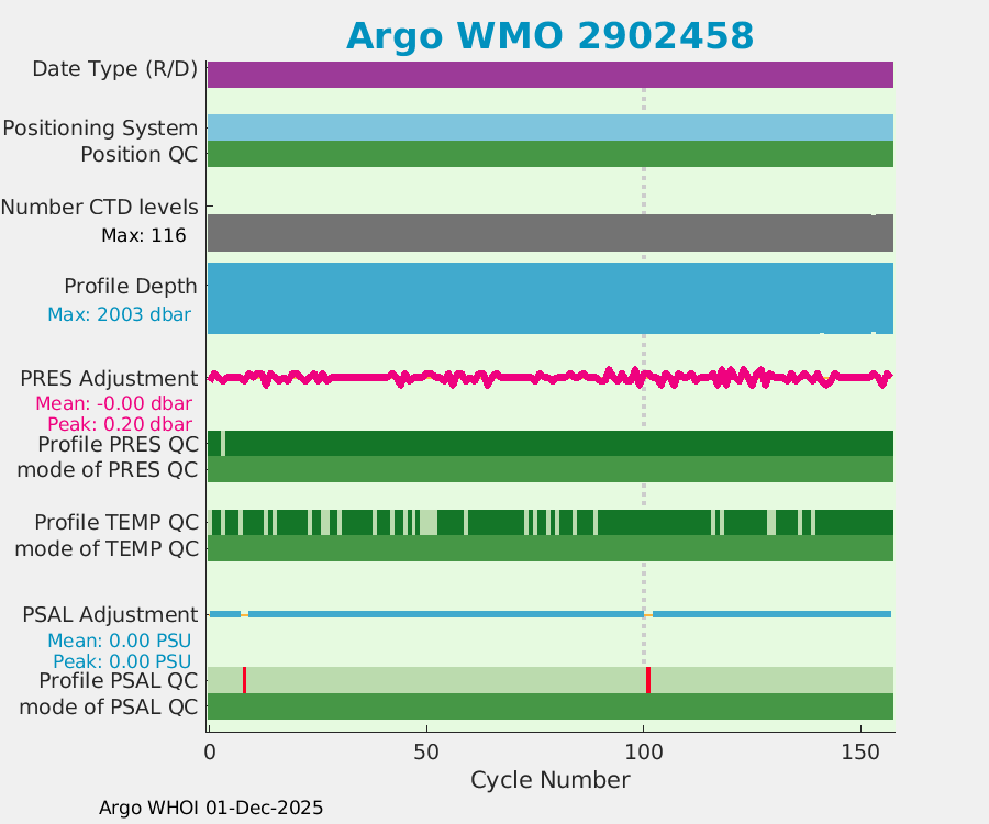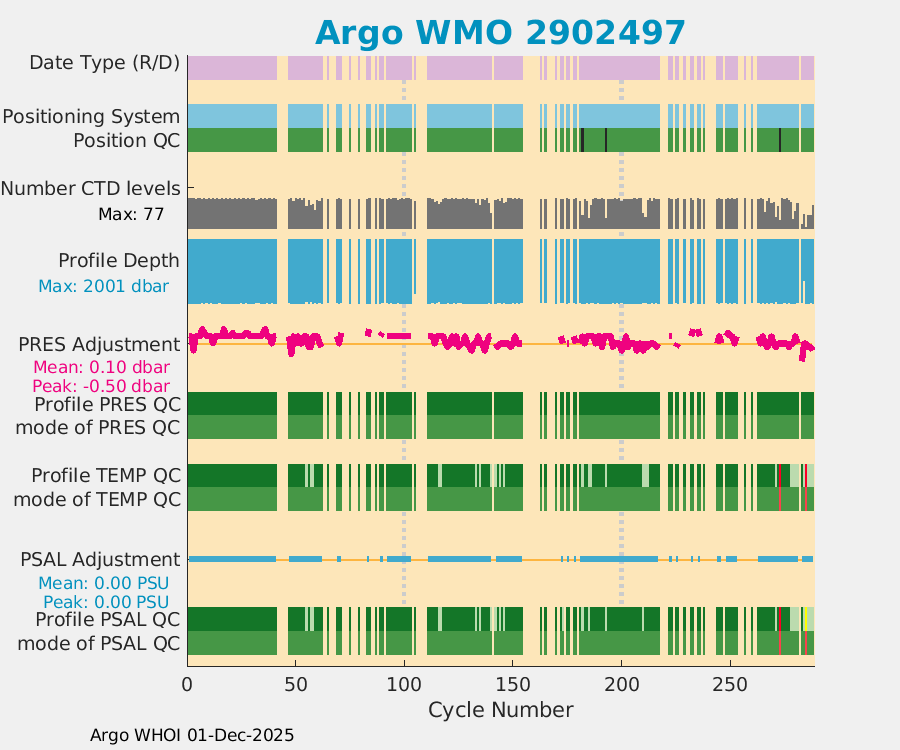 | WMO: #2902419 DAC: jma PI: Satoshi Mitarai NEMO: #262 KISTLER: #2114904 SBE41: #6218 Altimeter Comparison (IFREMER) EuroArgo Link | ![]() |