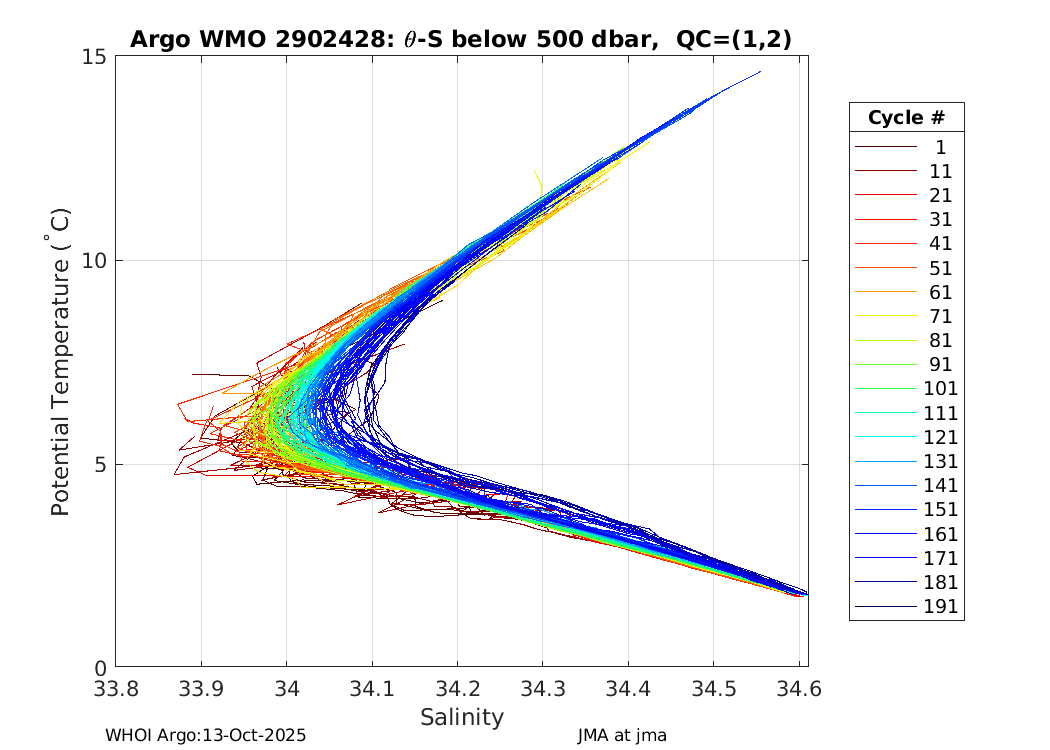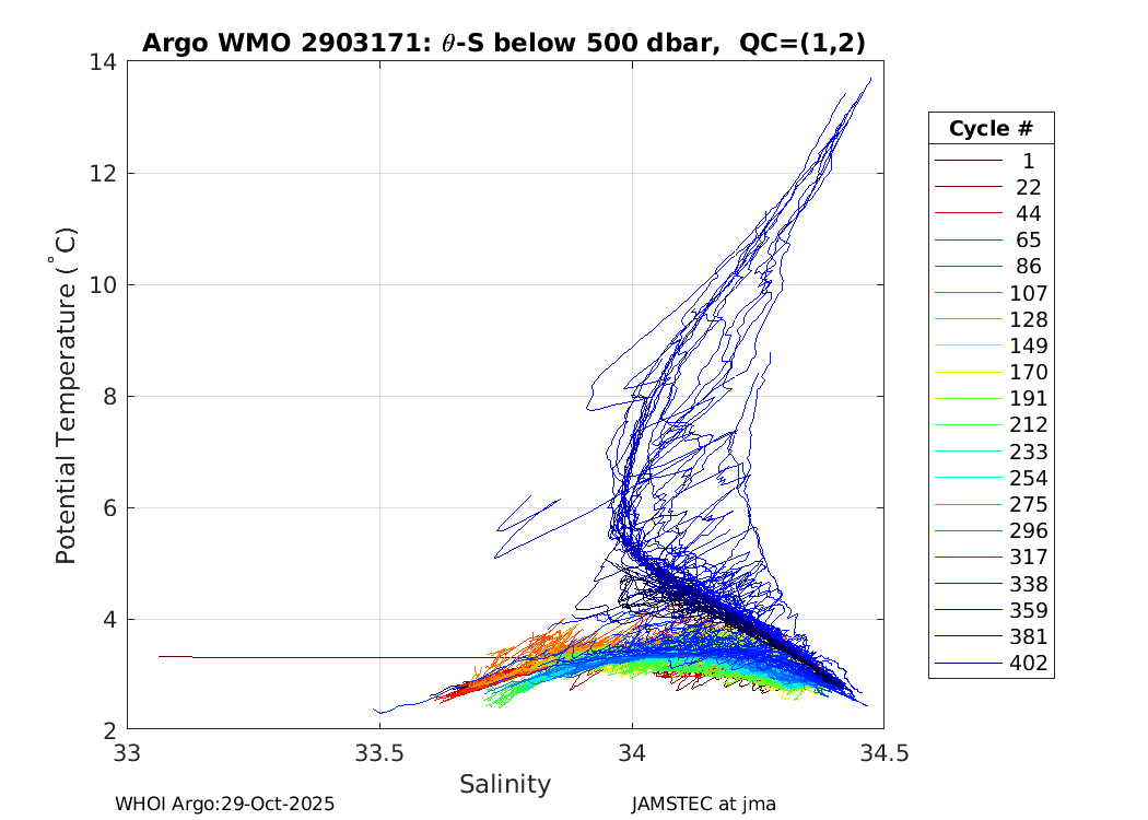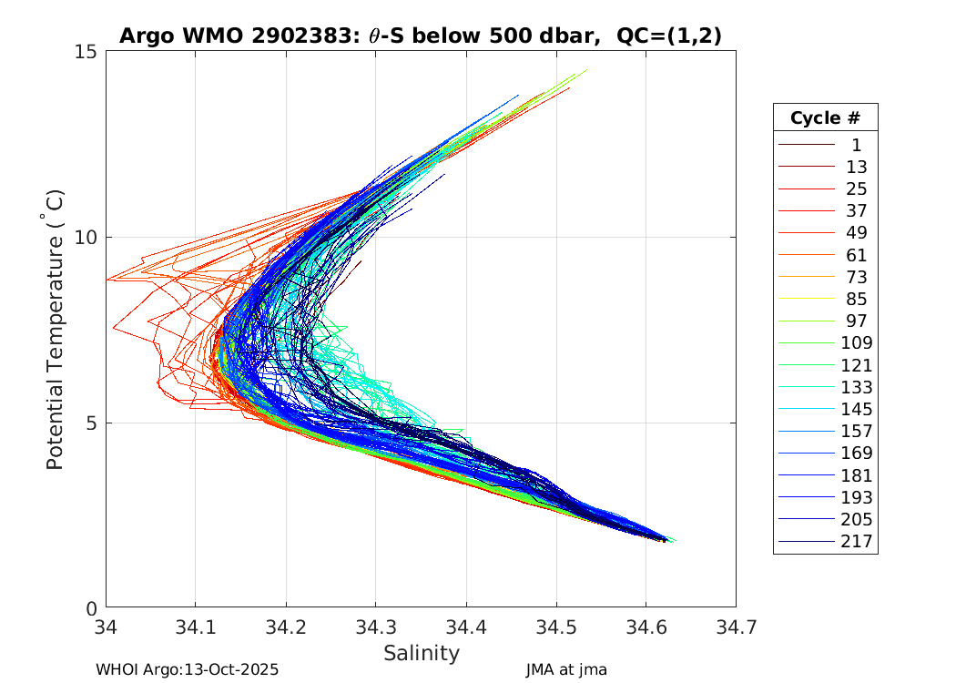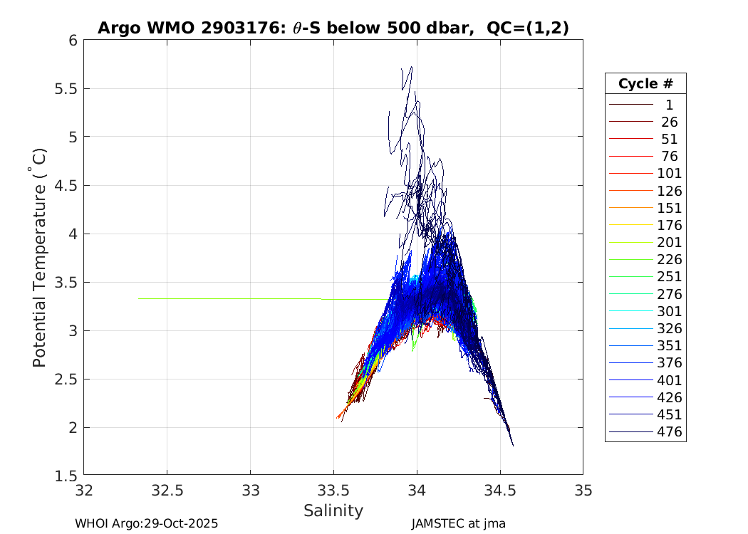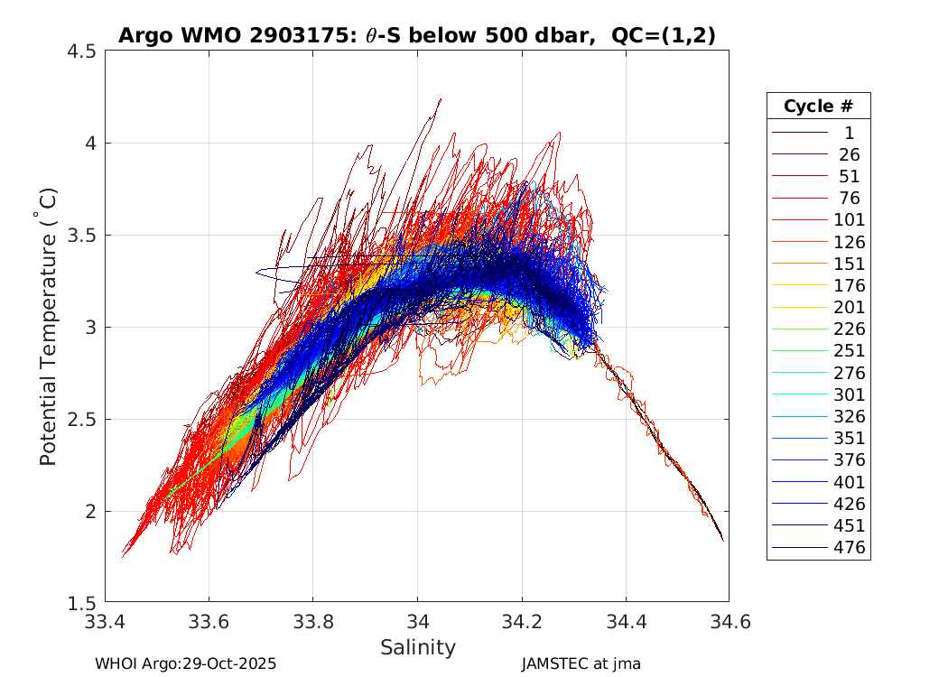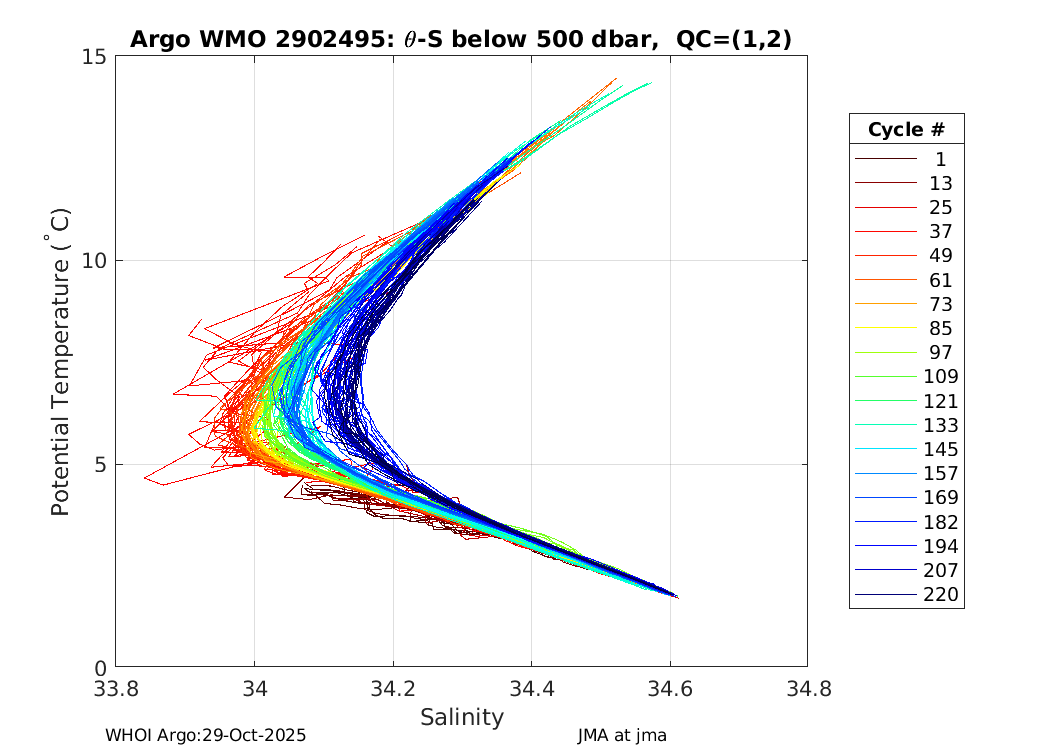 | WMO: #2903169 DAC: jma PI: JAMSTEC APEX: #6203 SBE41CP_V2: #4185 AANDERAA_OPTODE_4330: #887 Altimeter Comparison (IFREMER) EuroArgo Link | ![]() |
