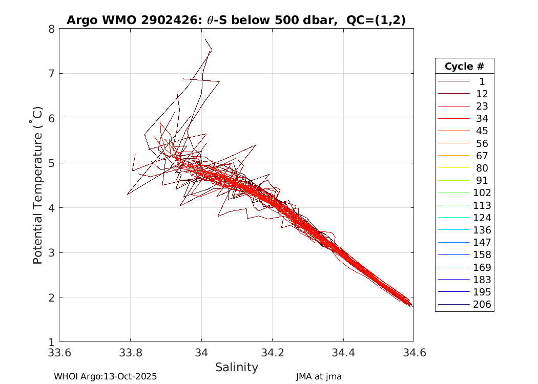 | WMO: #2902413 DAC: jma PI: Satoshi Mitarai NEMO: #256 KISTLER: #2114893 SBE41: #6208 Altimeter Comparison (IFREMER) EuroArgo Link | ![]() |