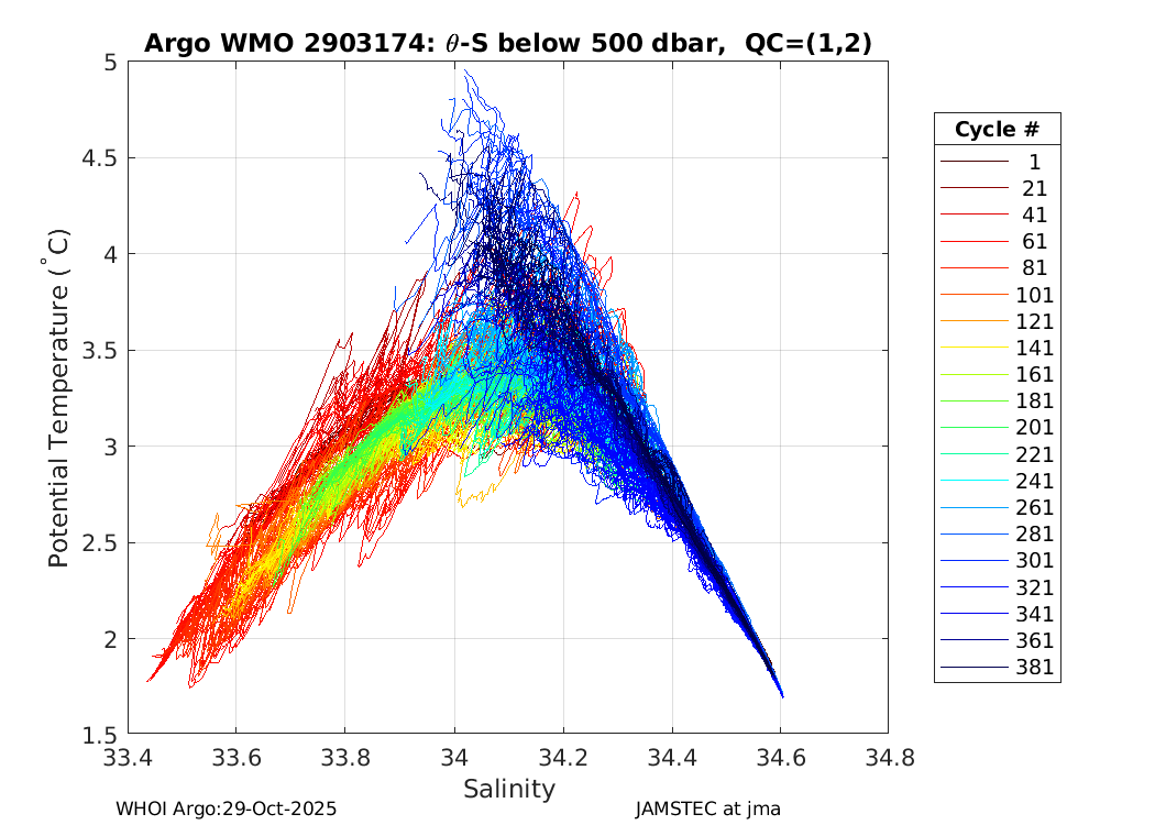 | WMO: #2903174 DAC: jma PI: JAMSTEC APEX: #6205 SBE41CP_V2: #4187 AANDERAA_OPTODE_4330: #925 Altimeter Comparison (IFREMER) EuroArgo Link | ![]() |