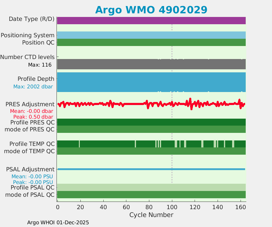 | WMO: #4902029 DAC: jma PI: JAMSTEC ARVOR: # KISTLER: #2099812 SBE41CP_V2: #4658 Altimeter Comparison (IFREMER) EuroArgo Link | ![]() |