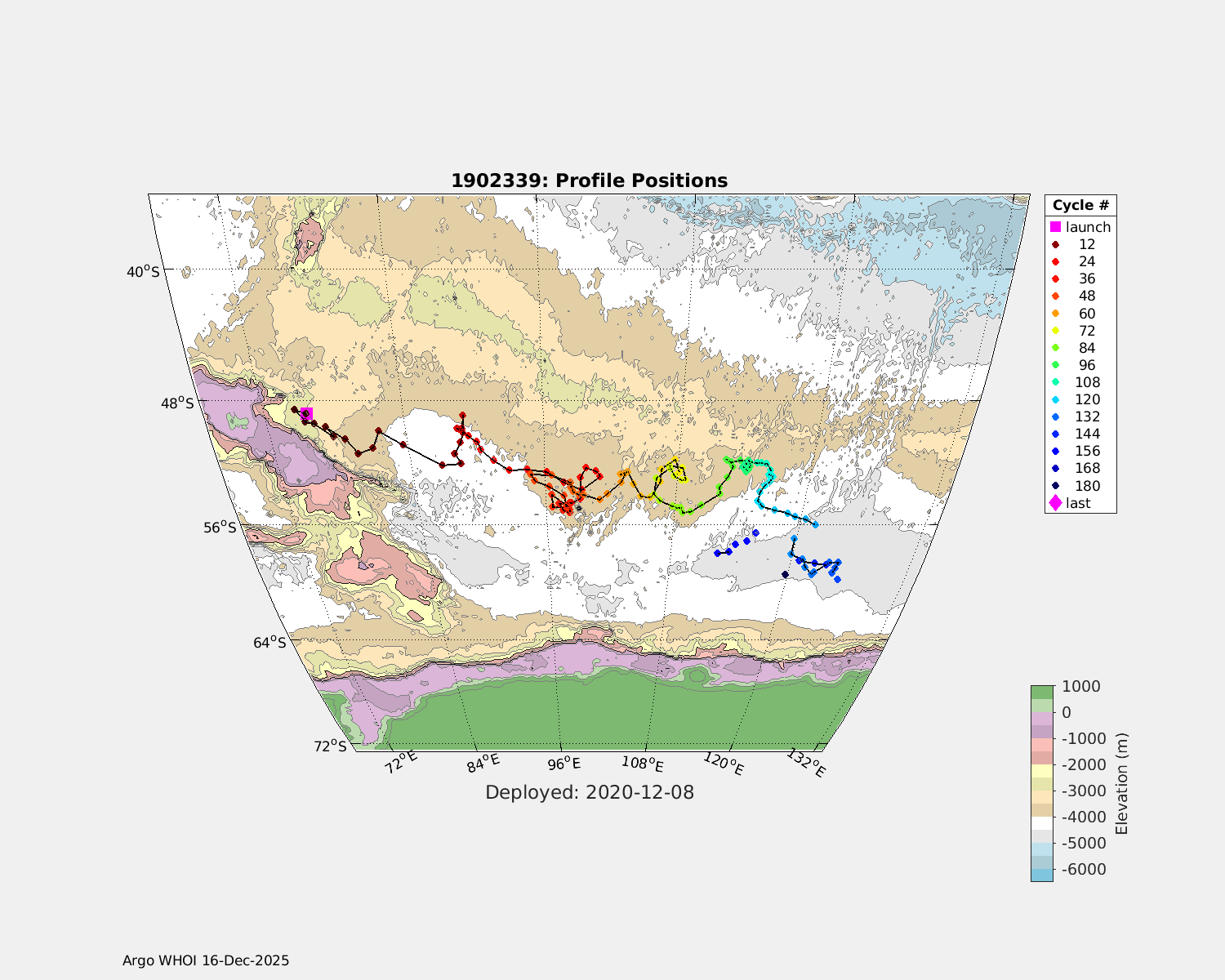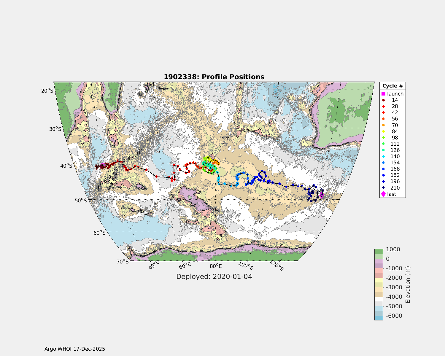 | WMO: #1902335 DAC: jma PI: JAMSTEC APEX_D: #46 KISTLER: #5234857 SBE61: #5694 Altimeter Comparison (IFREMER) EuroArgo Link | ![]() |