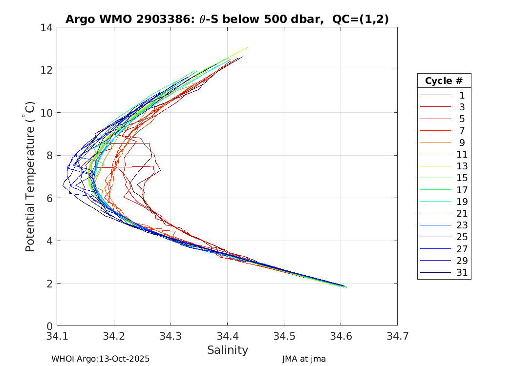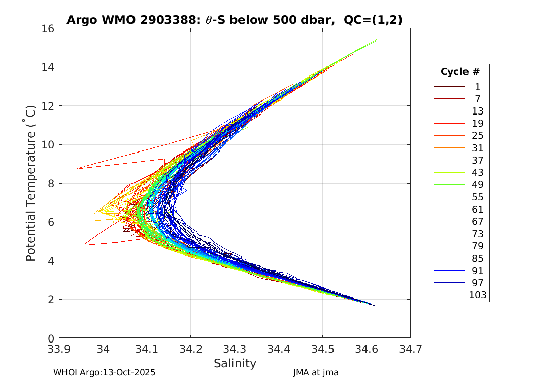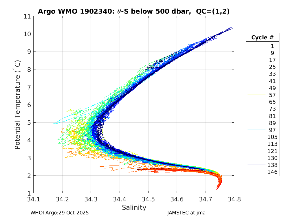 | WMO: #2903392 DAC: jma PI: JAMSTEC NAVIS_A: #954 SBE41N_V5.3.4: #11077 SBE63_OPTODE: #1987 MCOMS_FLBBCD: #164 SEAFET: #10254 Altimeter Comparison (IFREMER) EuroArgo Link | ![]() |