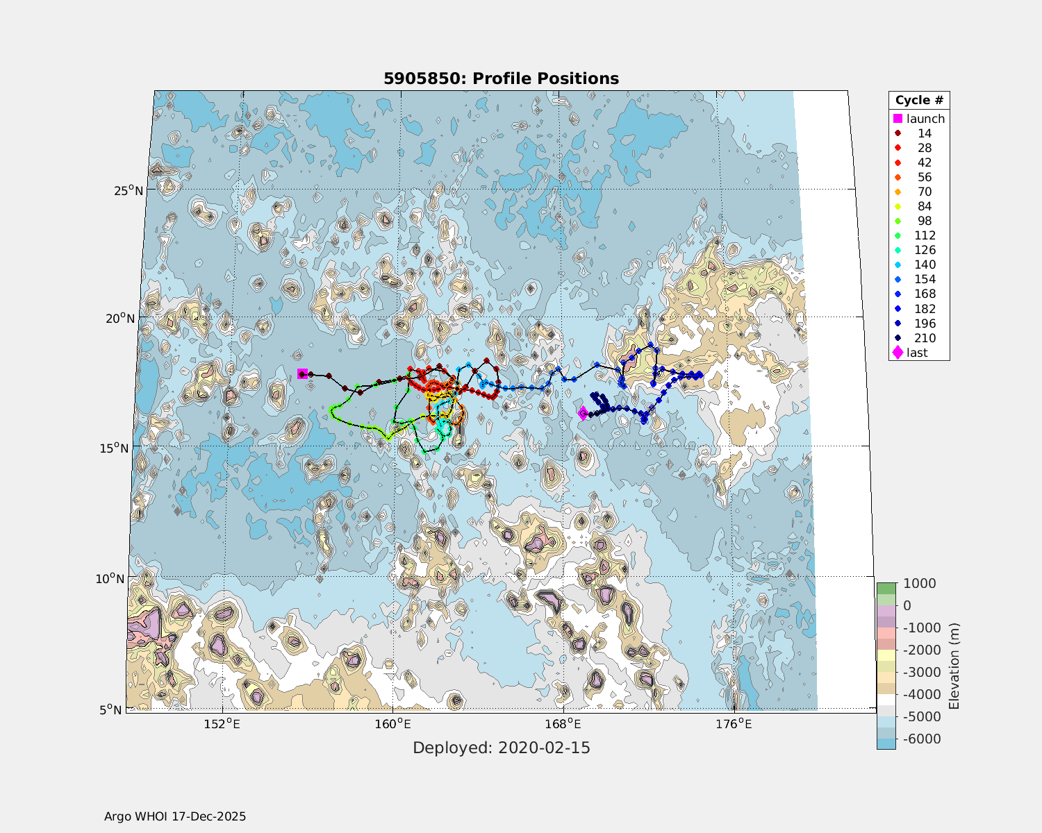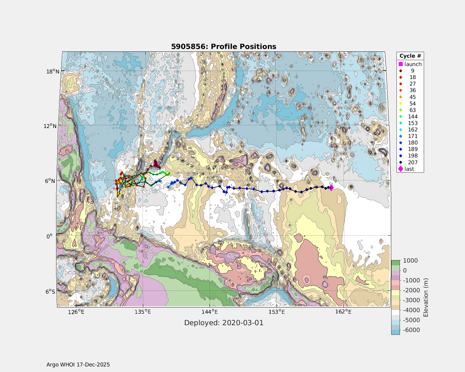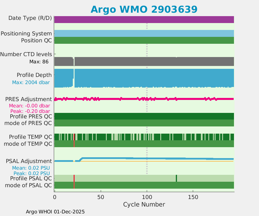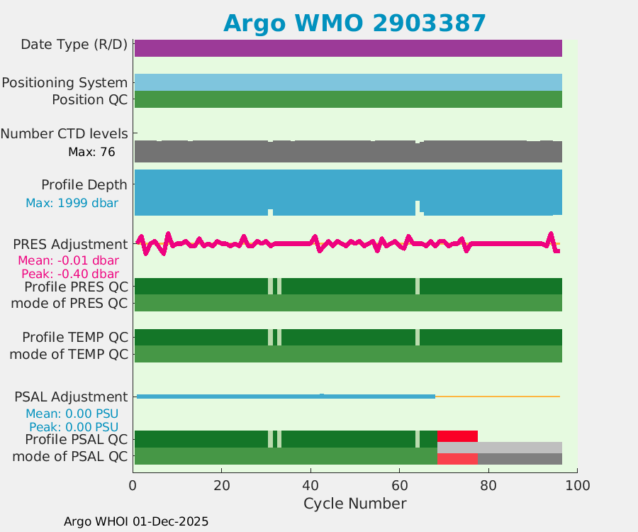 | WMO: #5905847 DAC: jma PI: JAMSTEC NAVIS_A: #921 DRUCK: #10746557 SBE41CP_V7.2.5: #10556 Altimeter Comparison (IFREMER) EuroArgo Link | ![]() |