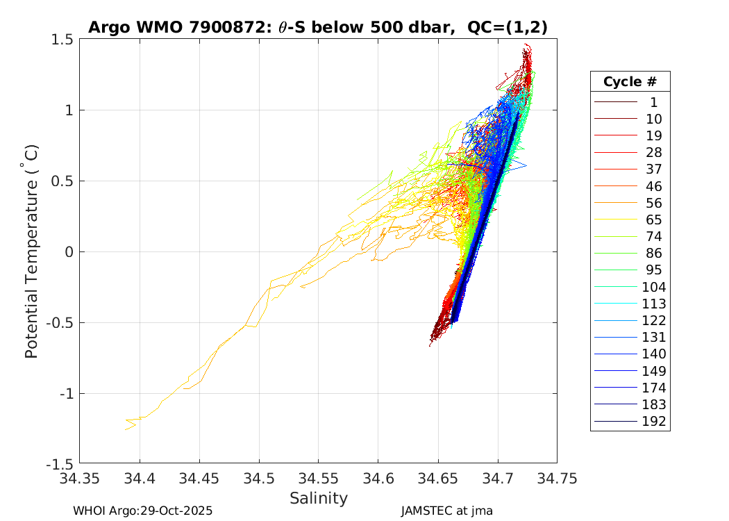 | WMO: #7900881 DAC: jma PI: JAMSTEC NINJA_D: #29 SBE41CP_V7.2.5: #10987 AROD_FT: #0026 Altimeter Comparison (IFREMER) EuroArgo Link | ![]() |