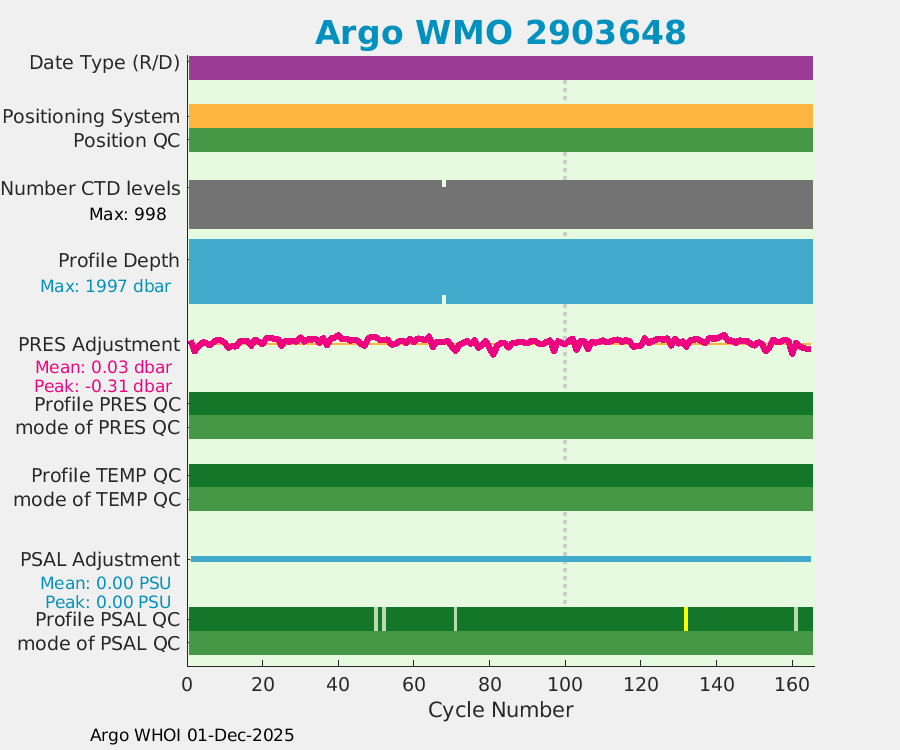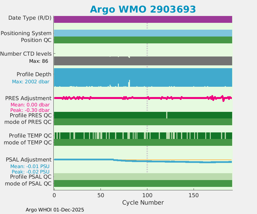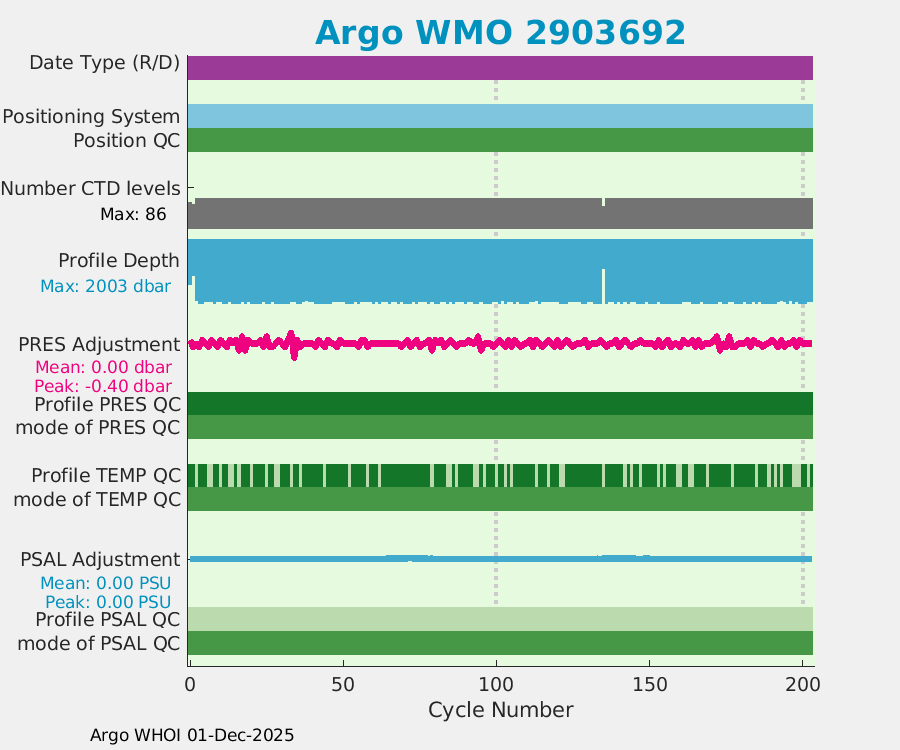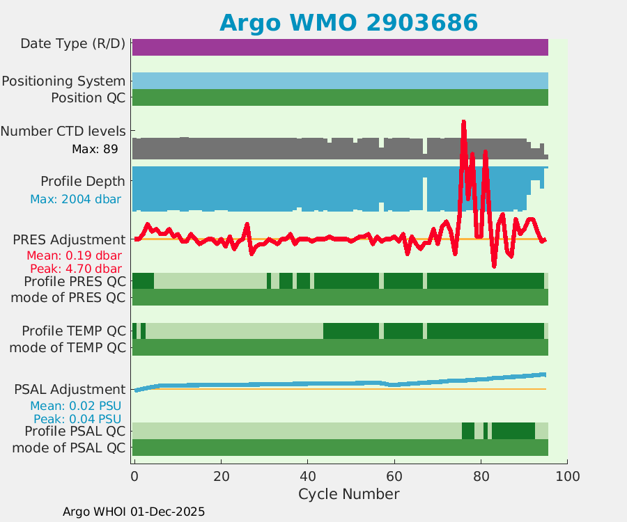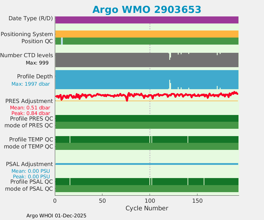 | WMO: #5905867 DAC: jma PI: JAMSTEC APEX: #8799 DRUCK: #10977579 SBE41CP_V7.2.5: #11354 Altimeter Comparison (IFREMER) EuroArgo Link | ![]() |