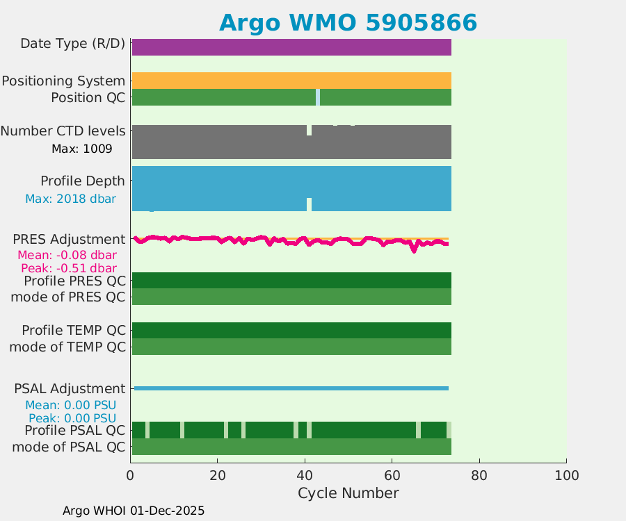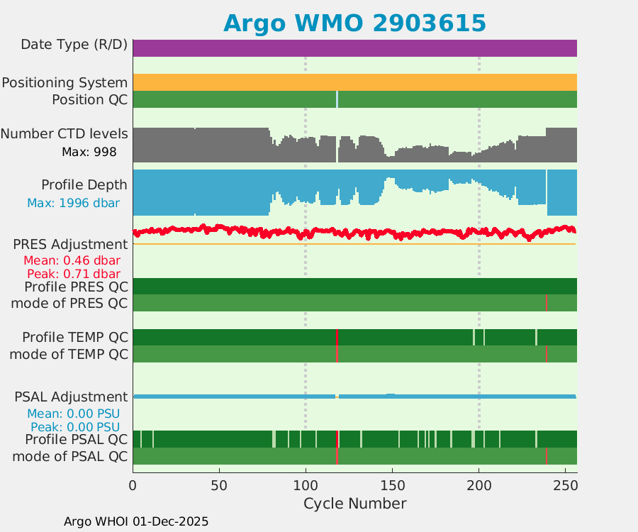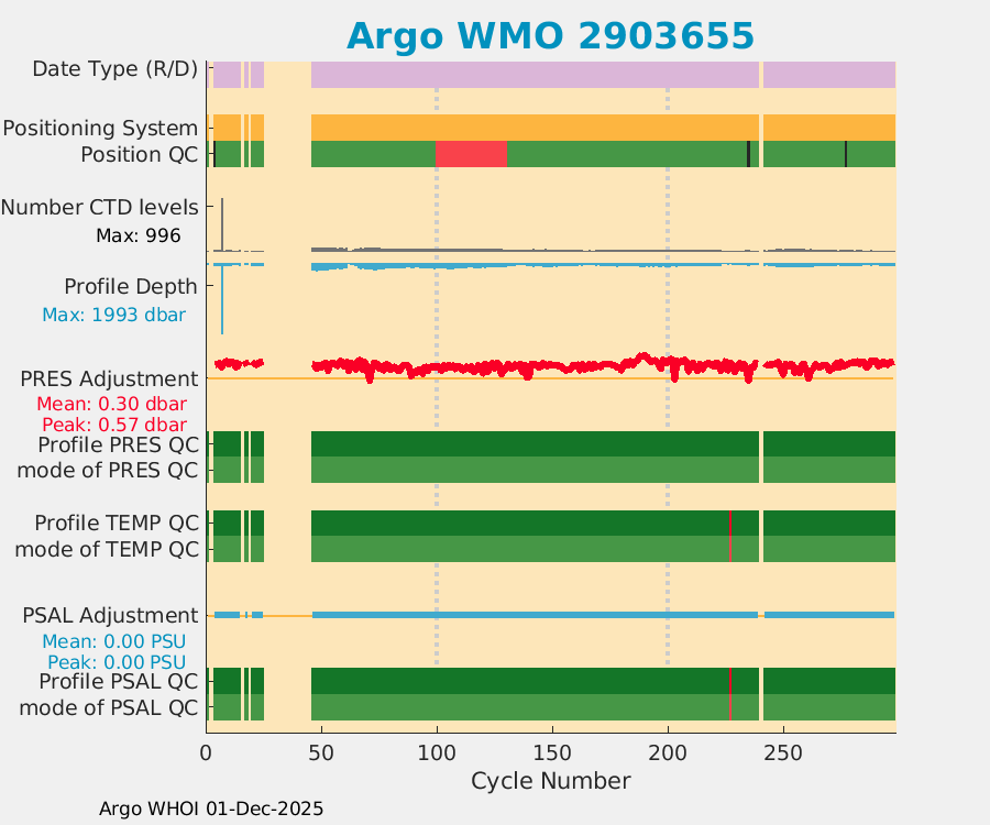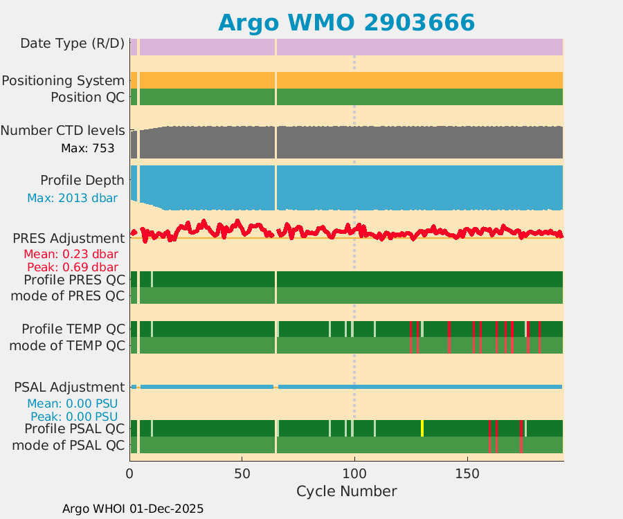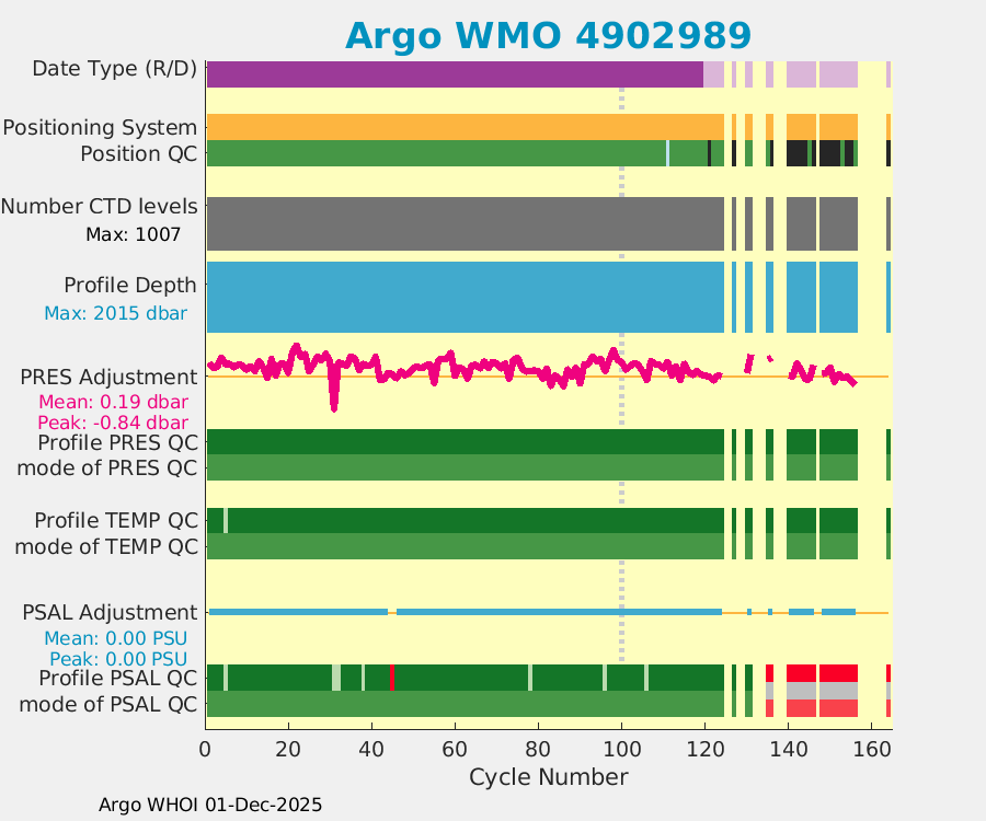 | WMO: #5905867 DAC: jma PI: JAMSTEC APEX: #8799 DRUCK: #10977579 SBE41CP_V7.2.5: #11354 Altimeter Comparison (IFREMER) EuroArgo Link | ![]() |